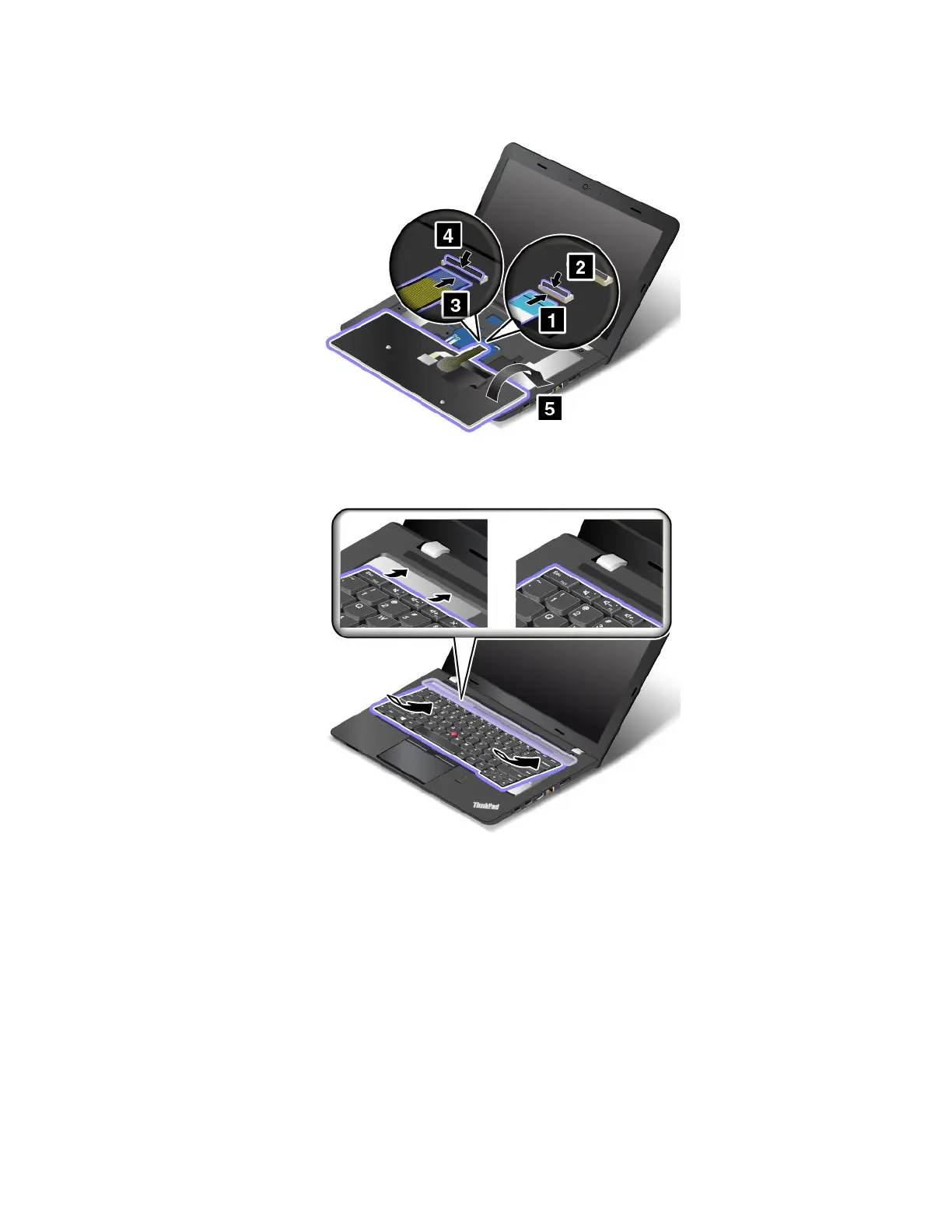 2.Insertthekeyboardintothespaceunderthekeyboard-bezelframeasshown.Ensurethattheedgeof