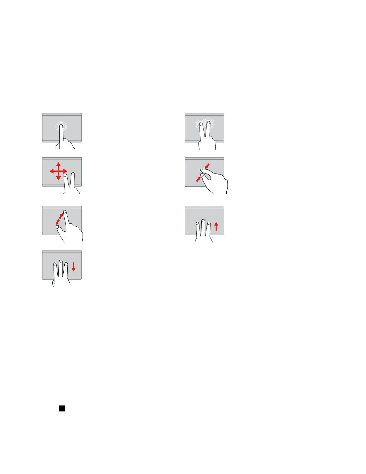 •SomegesturesarenotavailableifthelastactionwasdonefromtheTrackPointpointingdevice.