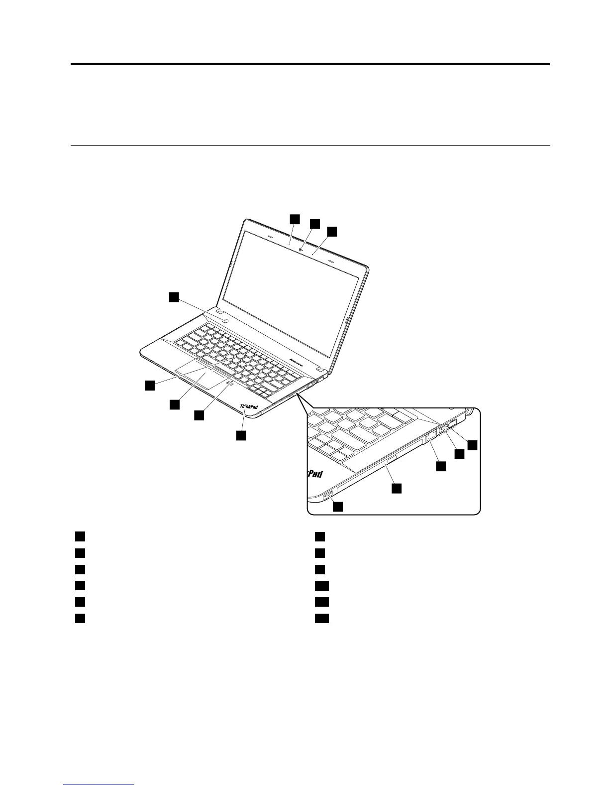 ThinkPad Edge E440 - Chapter 7. Locations; Locating Computer Controls, Connectors, and Indicators; Front View