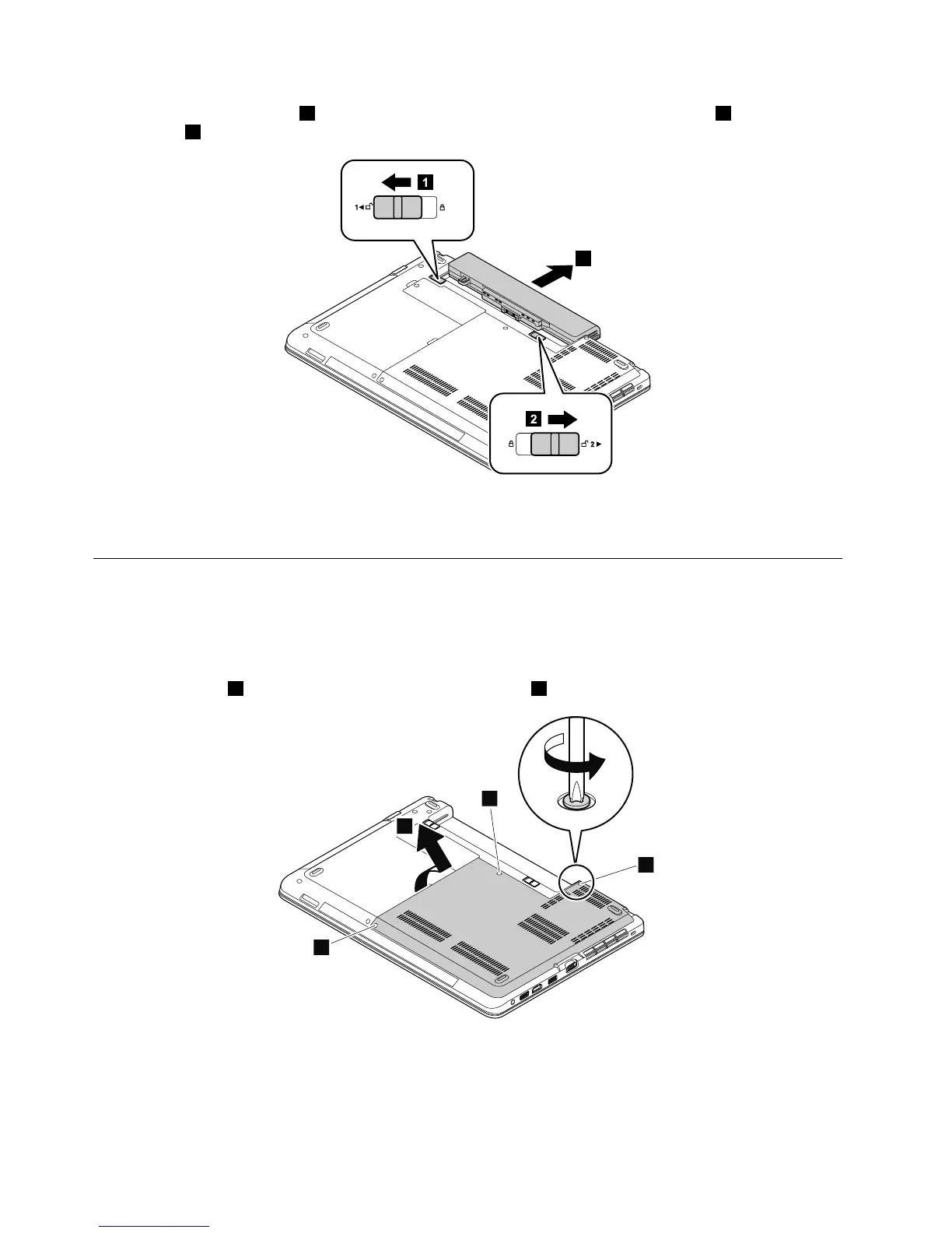 Unlockthebatterypacklatch1.Holdthebatterypacklockleverintheunlockedposition2andremovethe