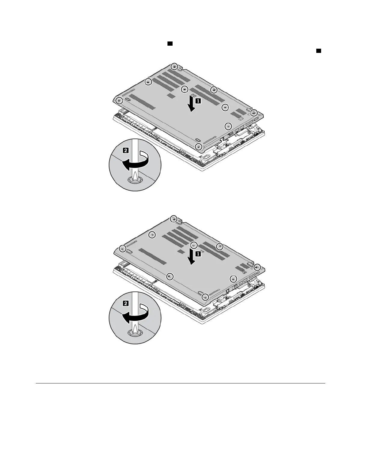 secured under the base cover assembly. Then tighten the screws to secure the base cover assembly