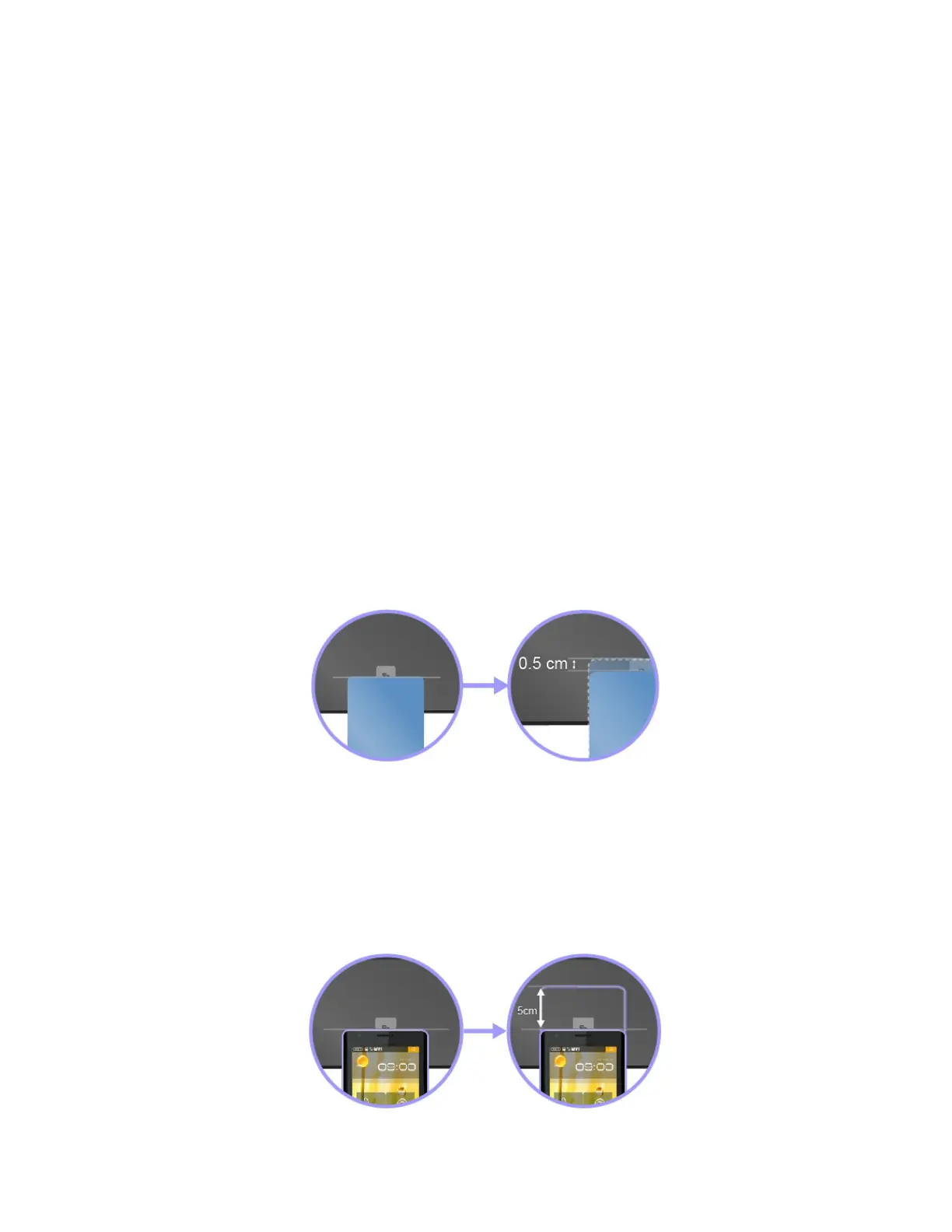 1. Position the card closely above the NFC label as shown. Align the shorter edge of the card with the