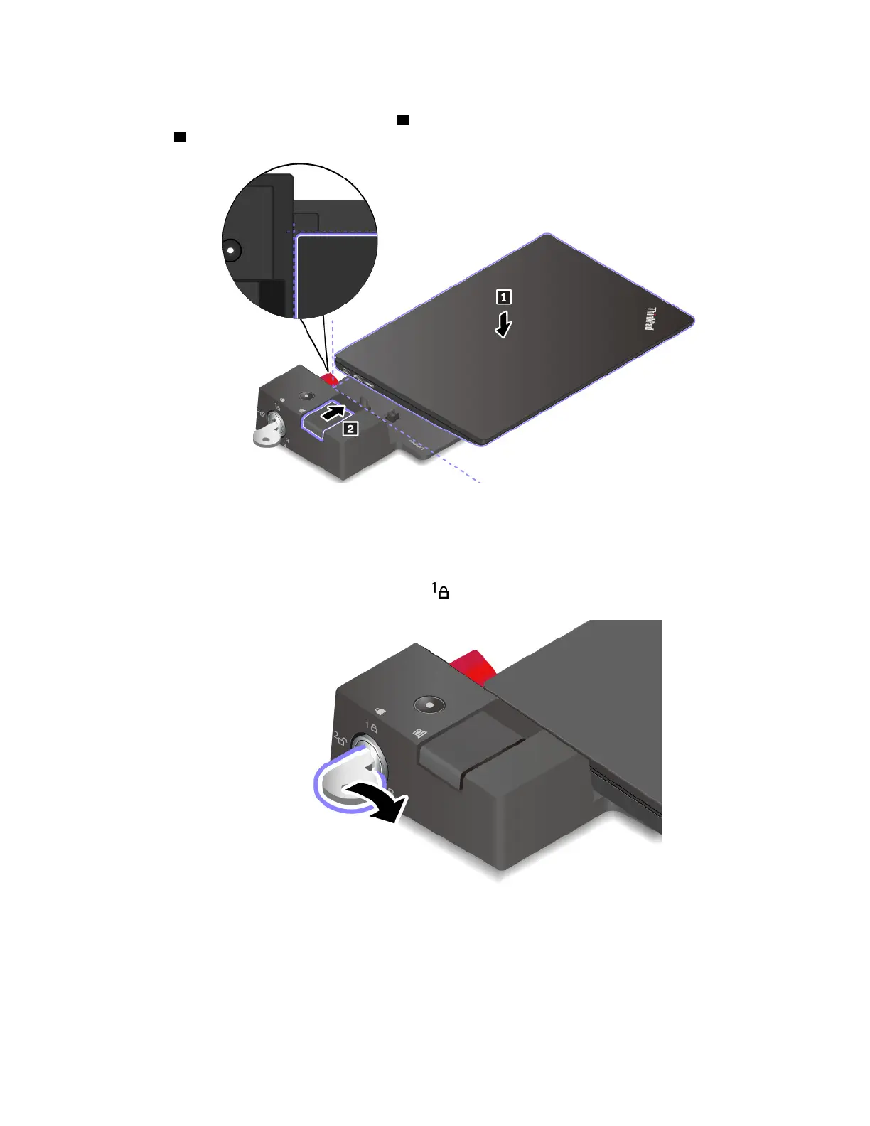 5. Align the top-left corner of the computer with the guide post of the docking station. Attach your