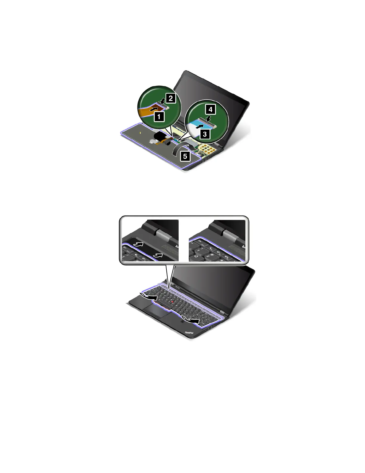 3. Slide the keyboard as shown by the arrows. Ensure that the latches are hidden under the keyboard