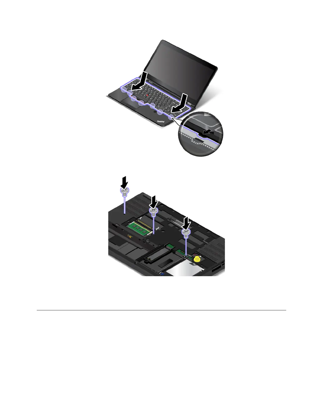 4. Turn the computer over. Reinstall the screws to secure the keyboard in place.