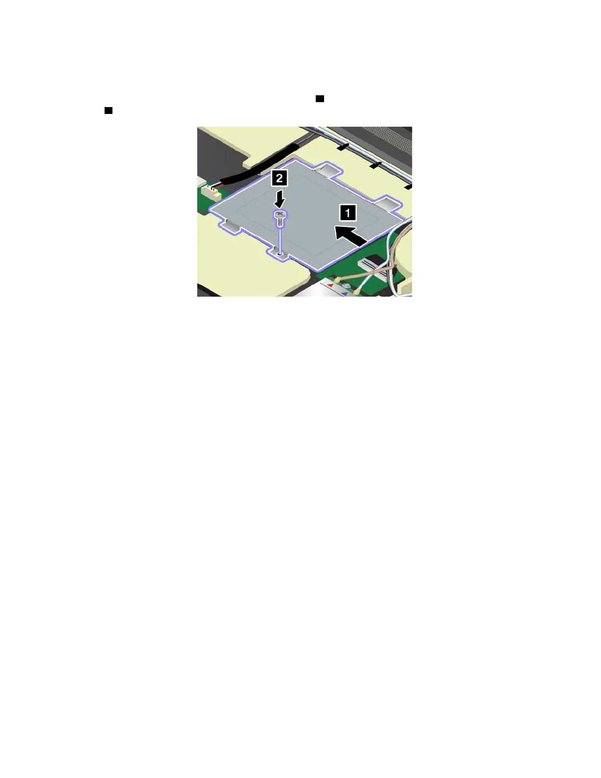 8. Reinstall the metal sheet into place as shown by arrow