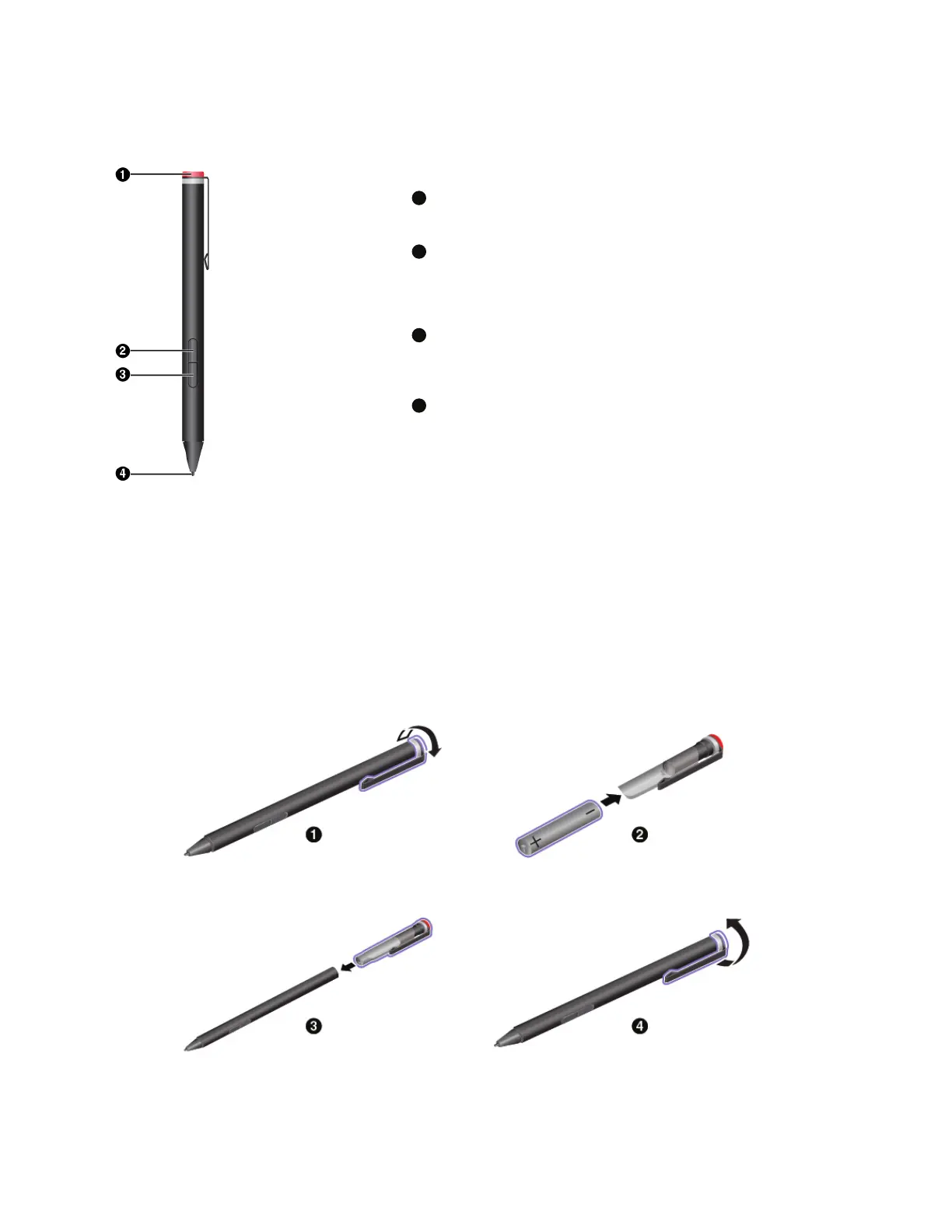 Depending on the model, your pen might not be installed with a battery. To install an AAAA alkaline battery,