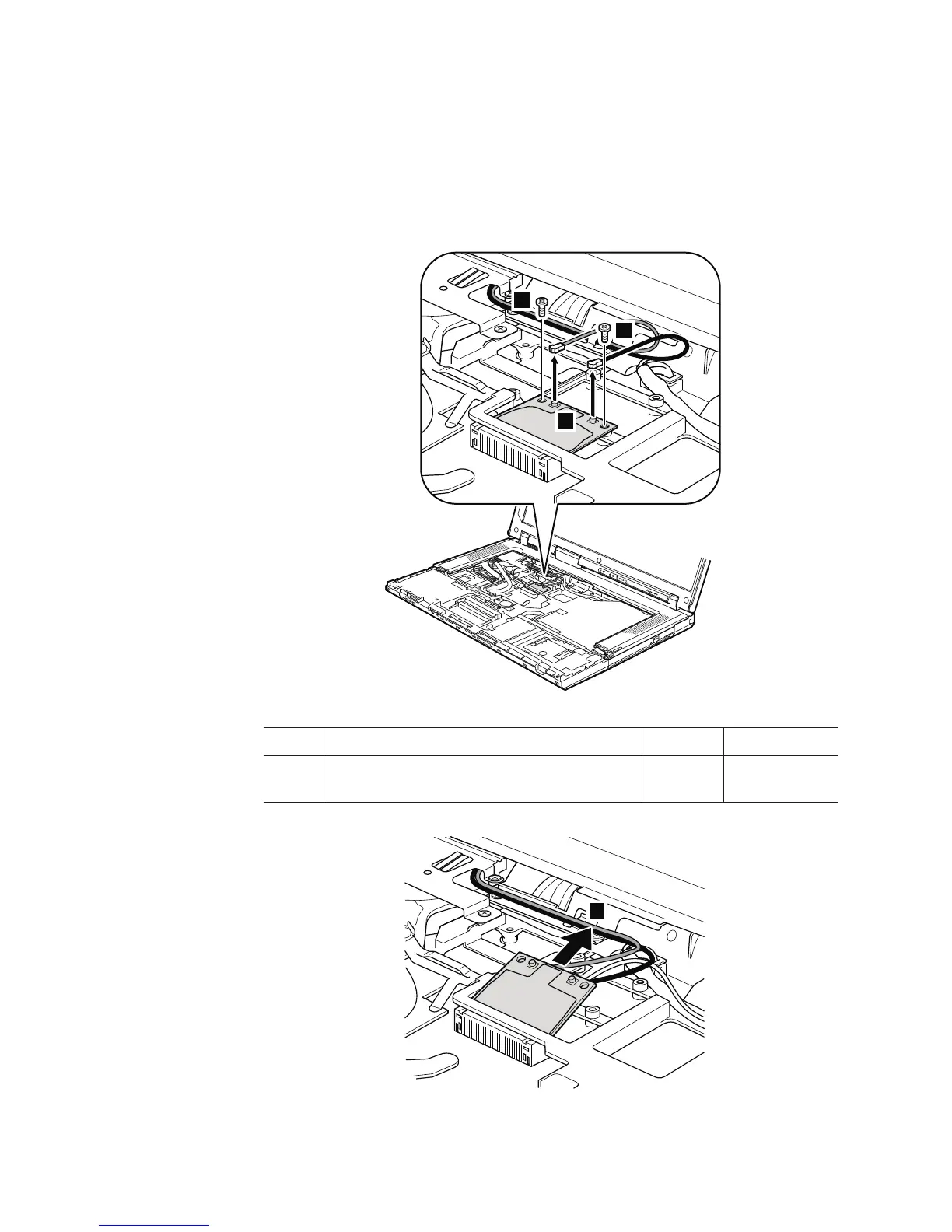 Table 15. Removal steps of PCI Express Mini Card for wireless LAN (continued)