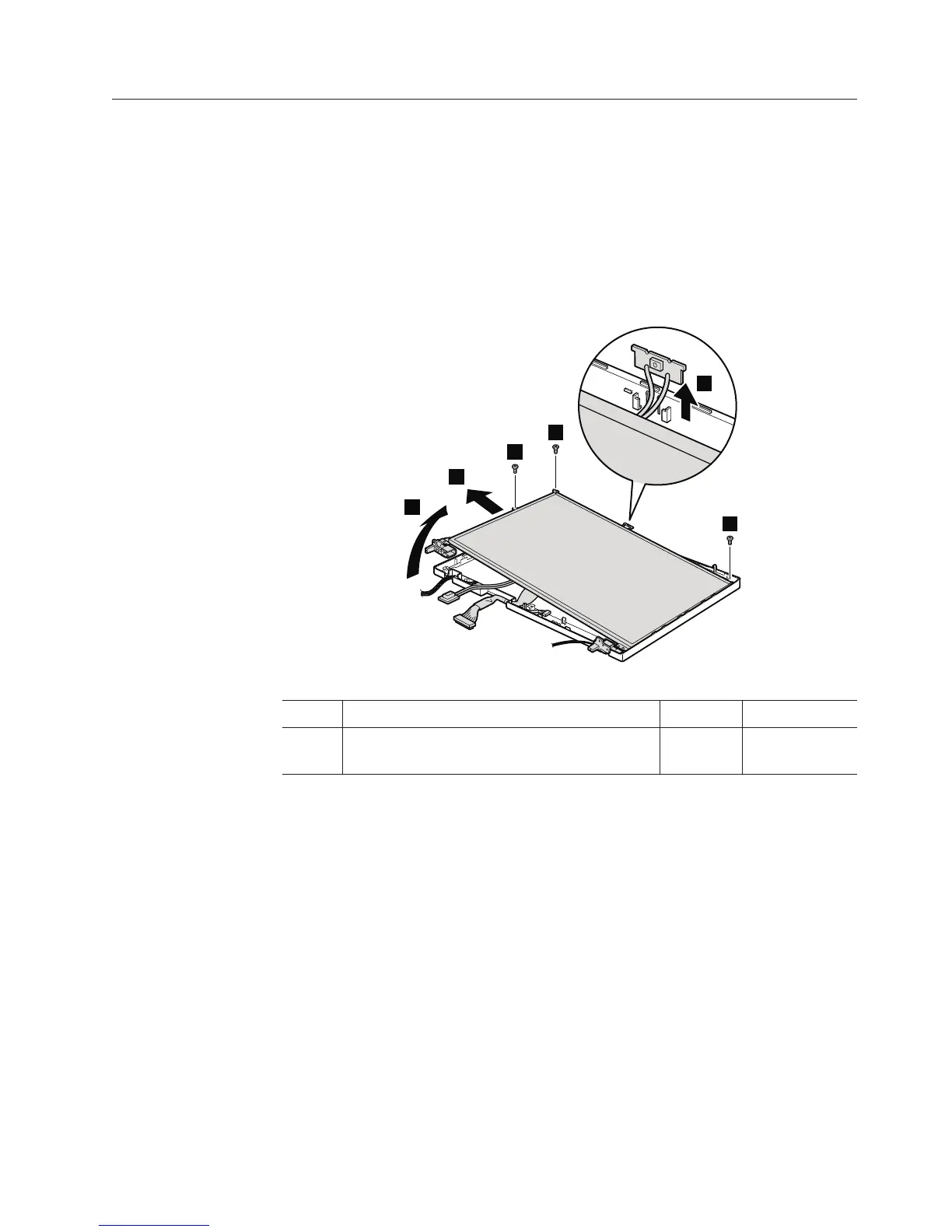 Table 29. Removal steps of LCD panel, LCD cable, hinges, and ALPET sheets