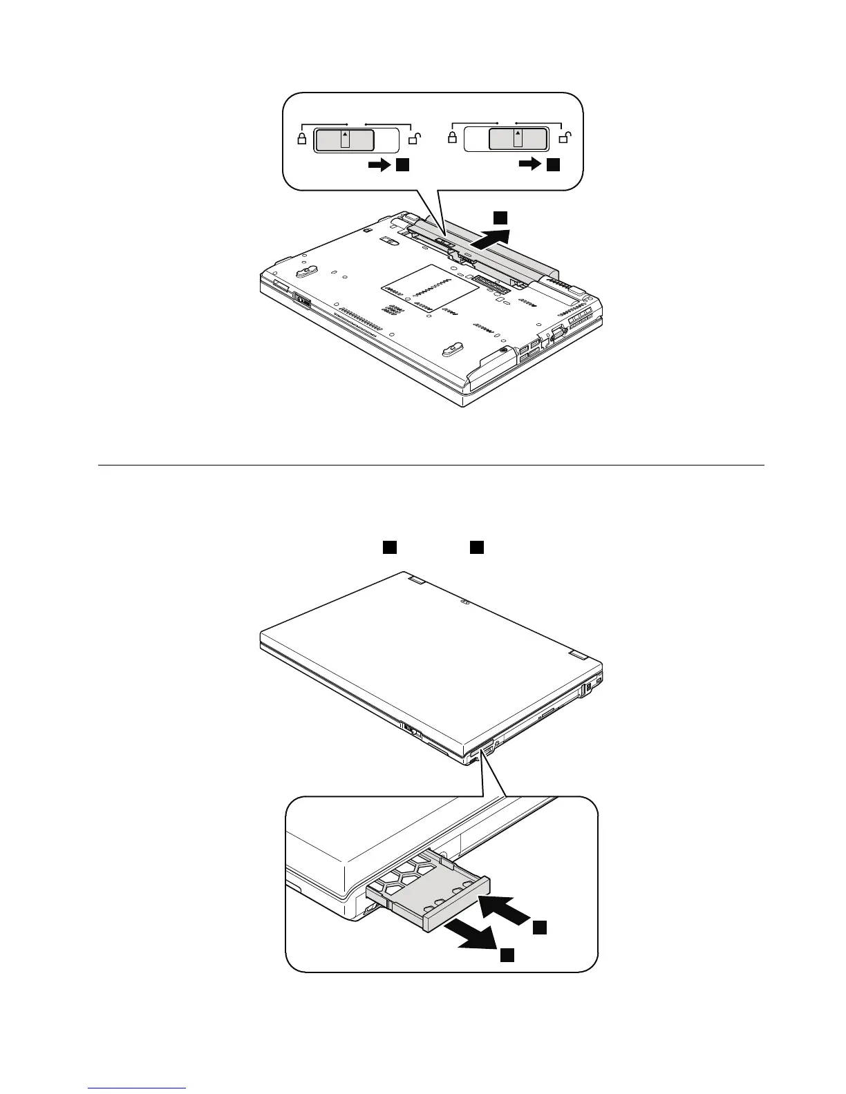 Wheninstalling:Installthebatterypackintheslot.Makesurethatthebatterylatchisinthelockedposition.