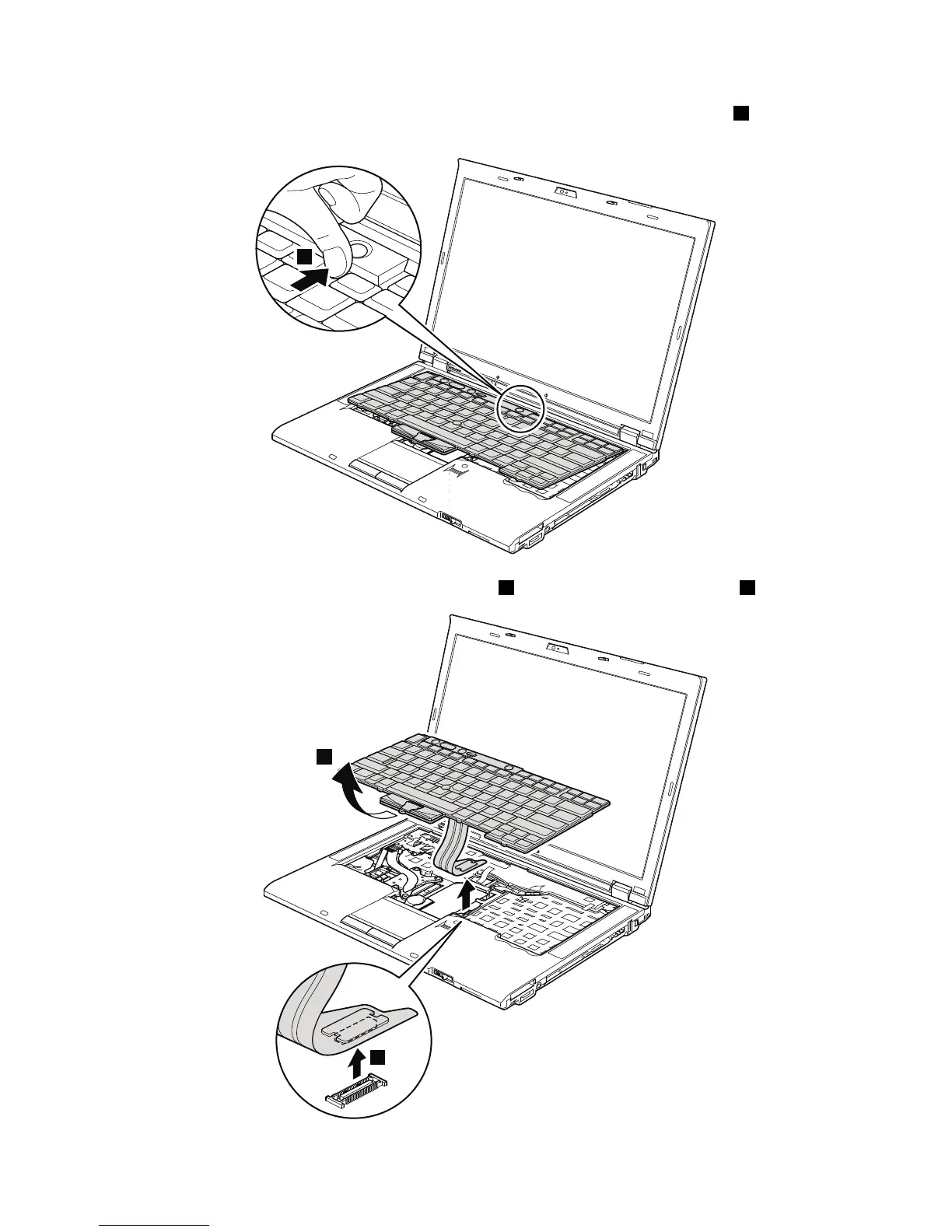 Slightlypressthekeyboardandslideitalittlebitforward,inthedirectionshownbyarrow2,todetachthe