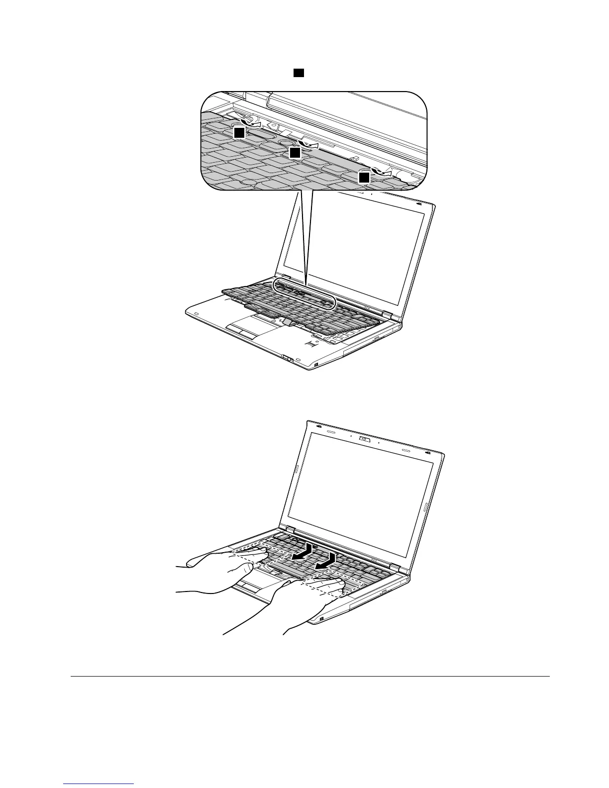 4.Securethekeyboardbytighteningthescrewsfromthebottomsideofthecomputer.