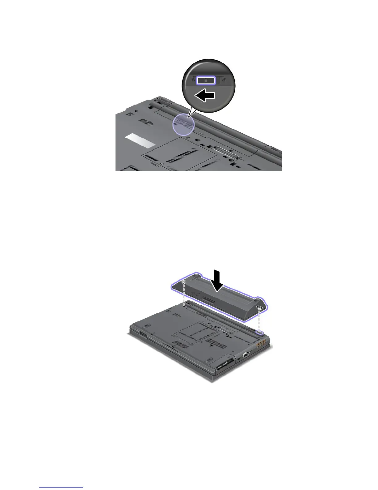 3.Aligntheextendedlifebatterywiththebottomsideofthecomputerasshownandrmlyattachthe