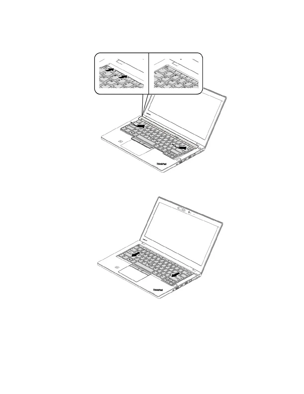 3.Slidethekeyboardinthedirectionasshownbythearrows.Ensurethatthelatchesaresecuredunder