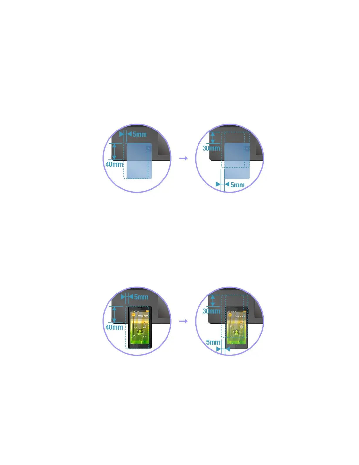 1.Positionthesmartphone40mm(1.57inches)fromtheedgeofthepalmrestandcloselyabovethe