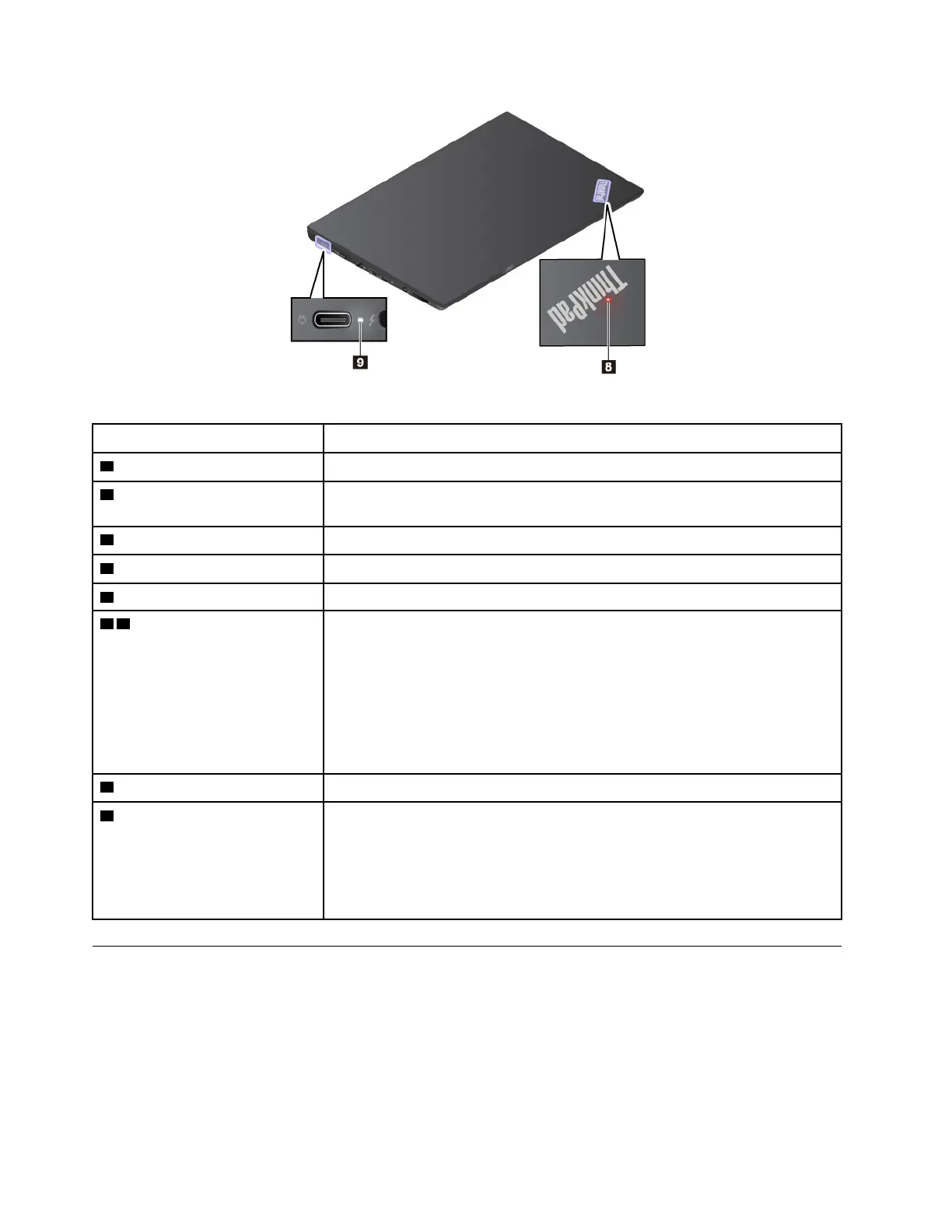 6 8 System status indicators The indicator in the ThinkPad logo on the computer lid and the indicator in the