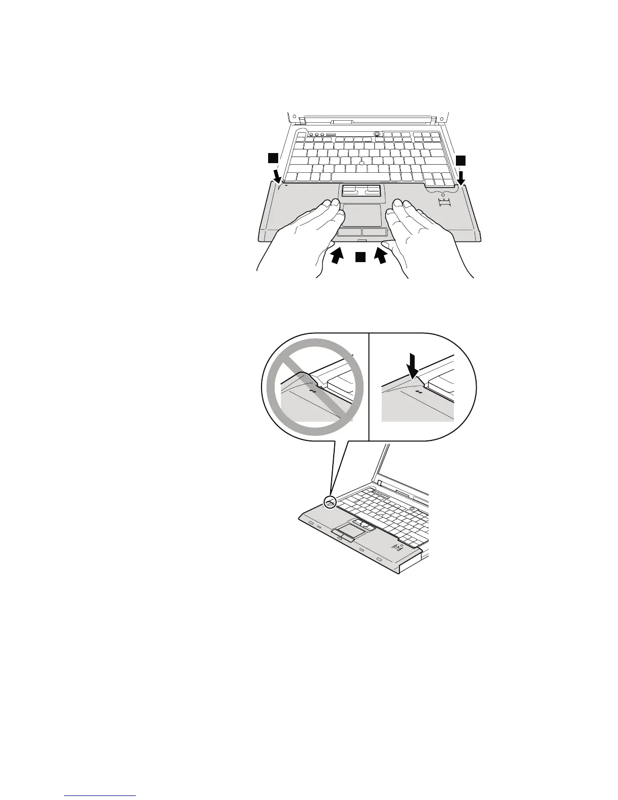 b. Press the left-top edge of the palm rest to latch it, and make sure that the