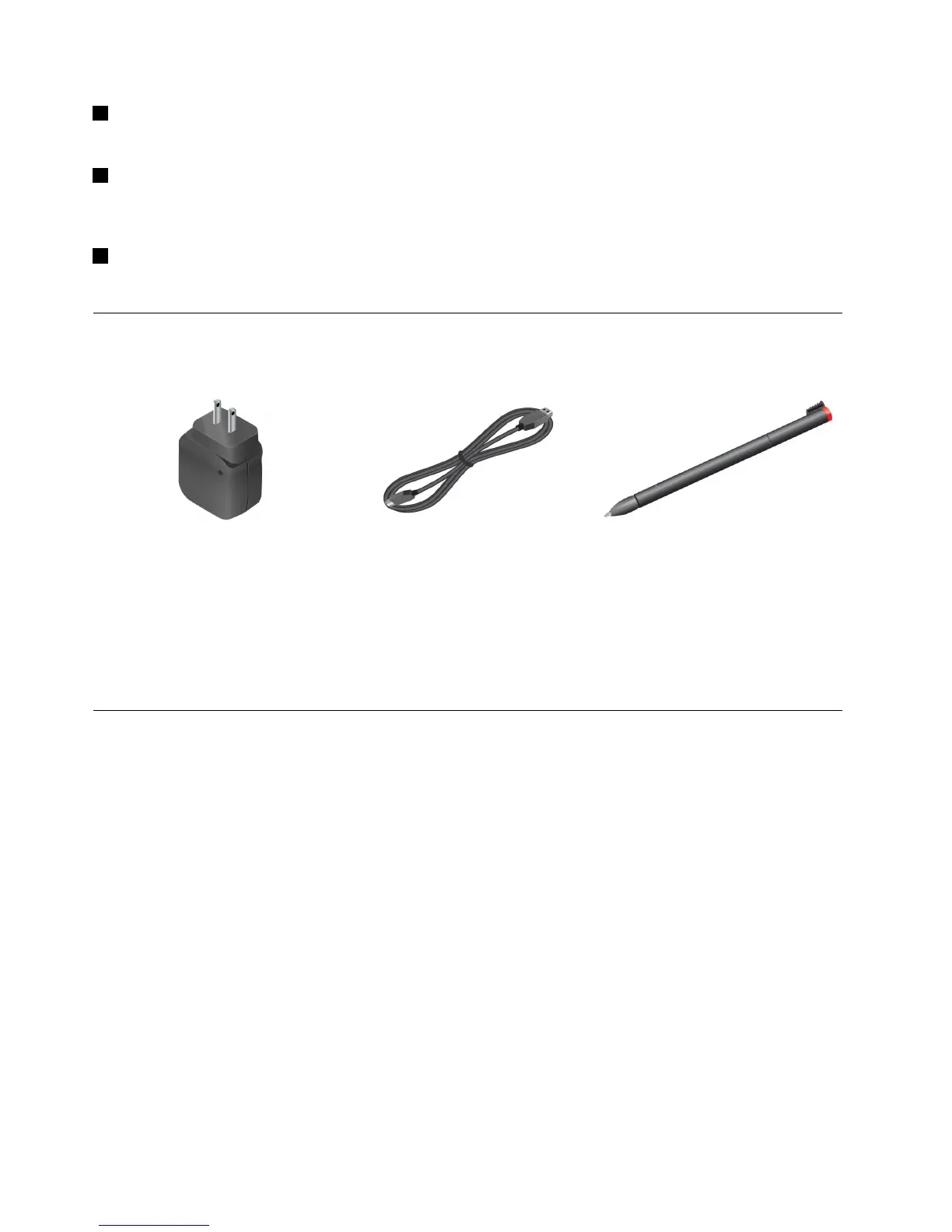 •ThinkPadTabletACAdapterandtheUSBcable:UsetheacadaptertogetherwiththesuppliedUSB