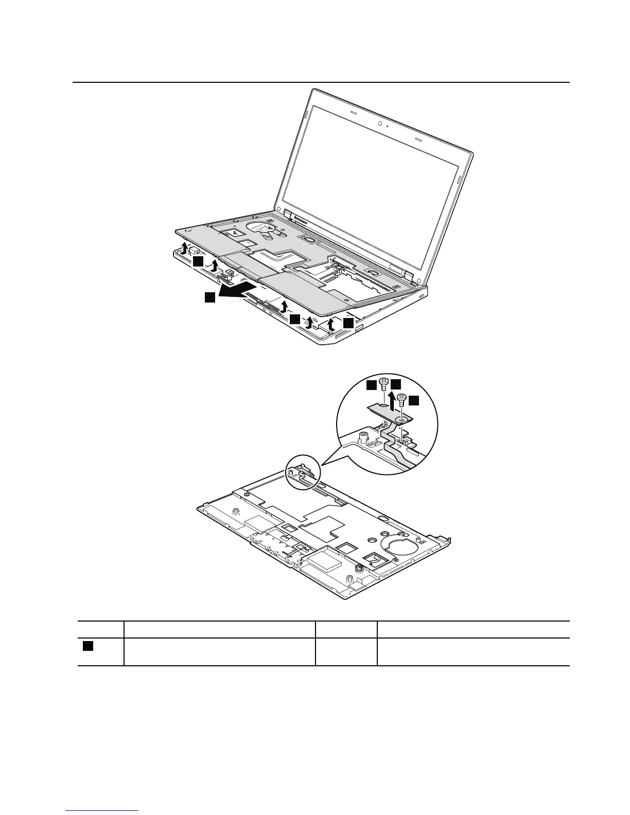 Table18.Removalstepsofpalmrestassembly,power-onboardassembly(withcable),andmicrophone(continued)