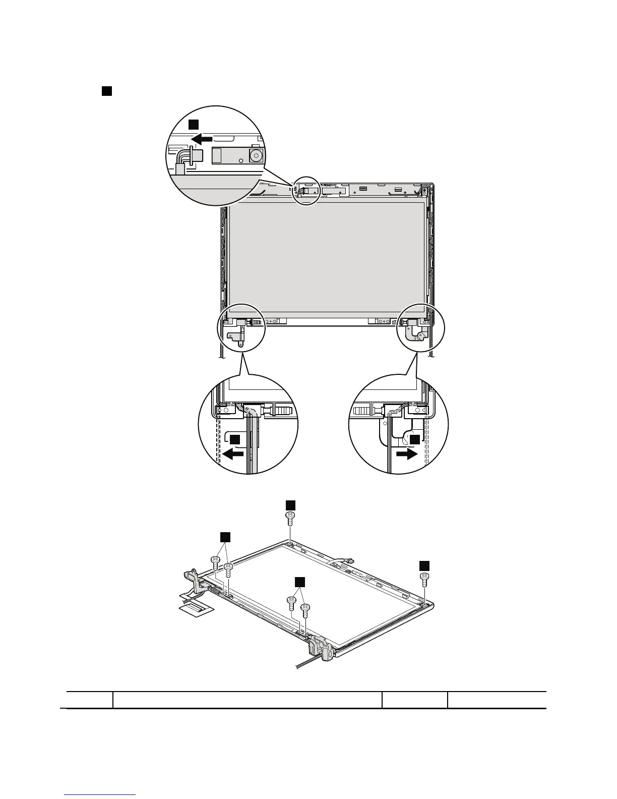 Table28.RemovalstepsofLCDpanel,hinges,andLCDcable