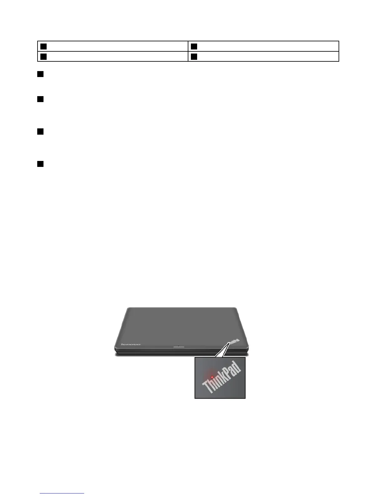 TheilluminateddotintheThinkPadlogoontheouterlidofyourcomputerandonthepalmrestworks