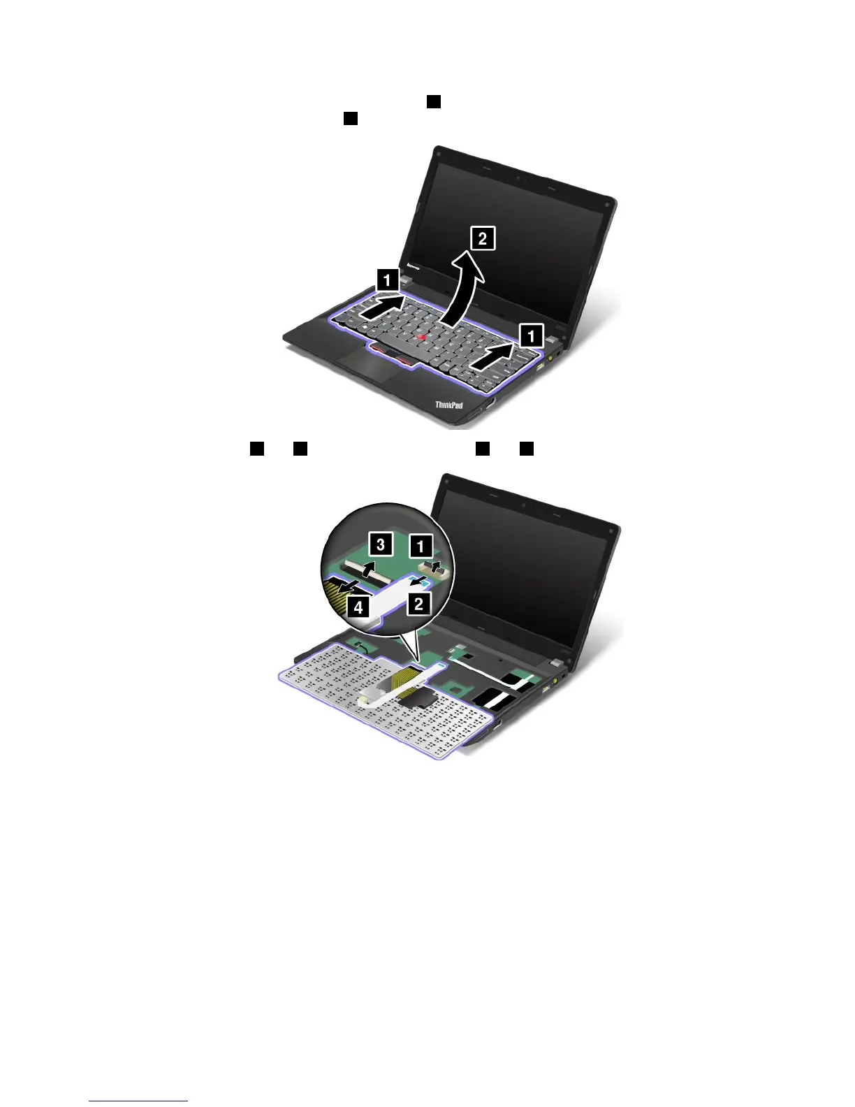 8.Removethecables2and4byippingtheconnectors1and3upwards.Removethekeyboard.