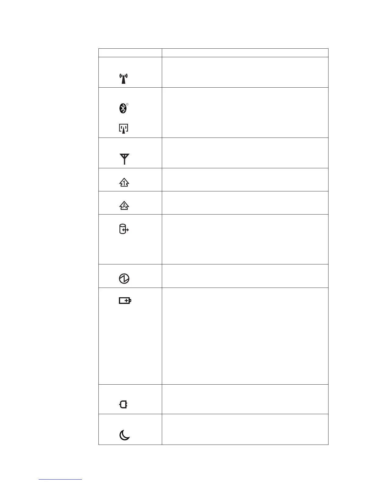 8 Battery status Green: The battery is charged between 80% to 100% of the