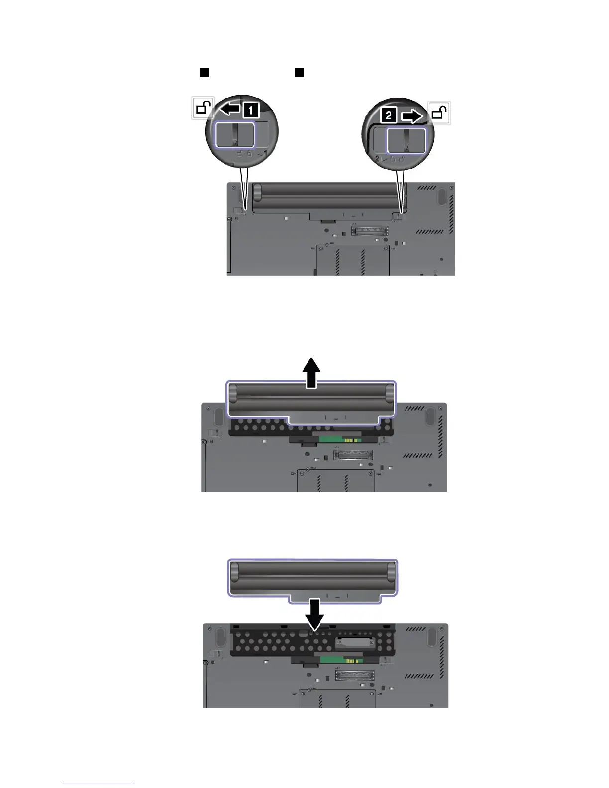 3.Unlockthebatterylatch1andholdthelatch2intheunlockedposition.