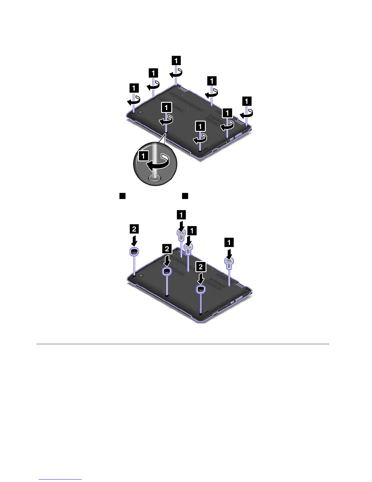 8.Resinstalltherestscrews1andthescrewcaps2.
