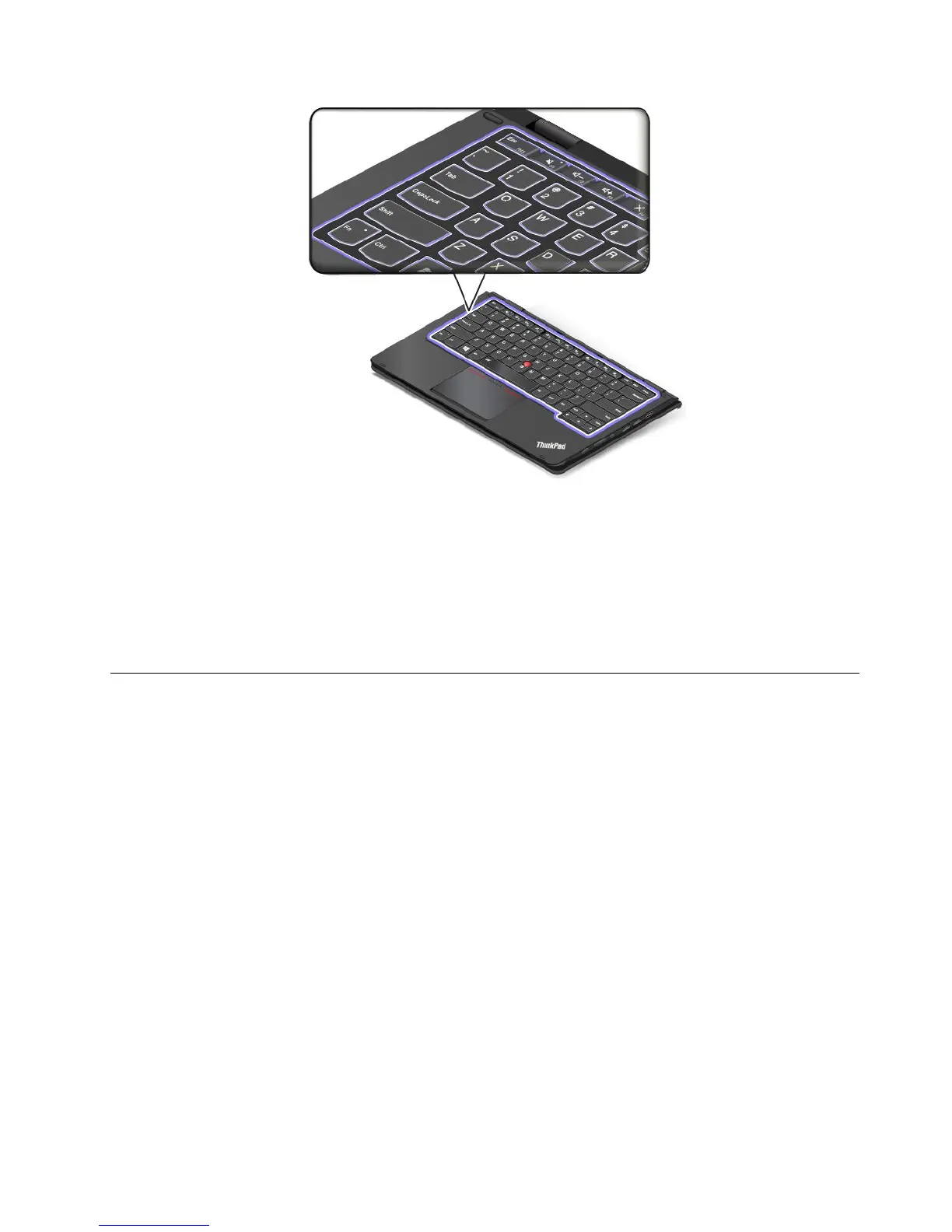 •Inthenotebookmode,thekeyboard,theThinkPadtrackpad,andtheTrackPointpointingstickare