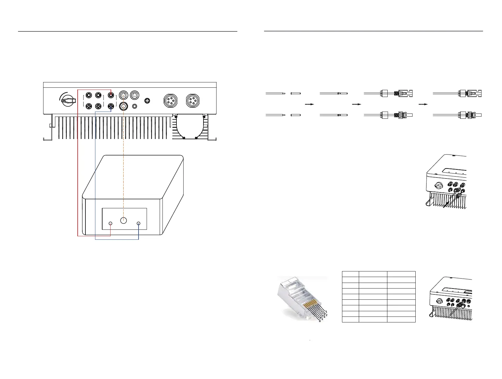 Connect the BMS cable between battery and inverter, insert the RJ45 connector with