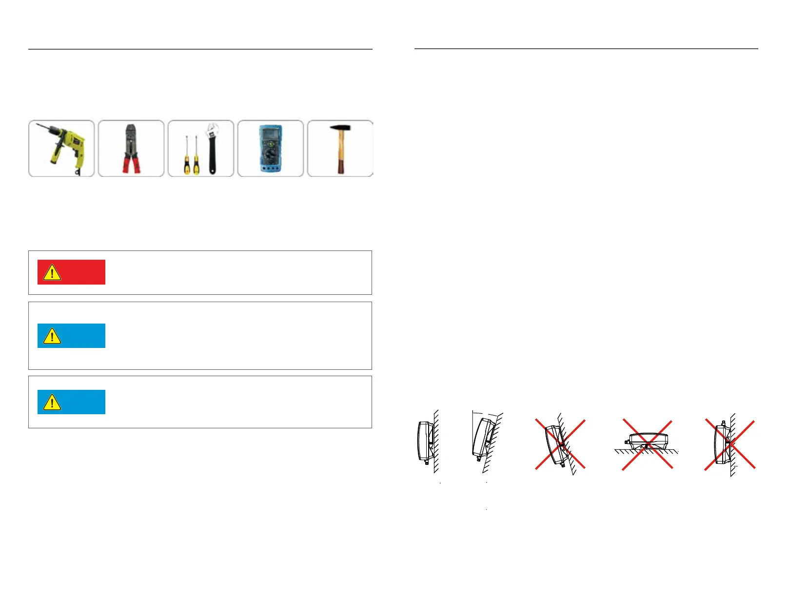 The inverter shall be installed on a vertical wall, or within 15°at most if