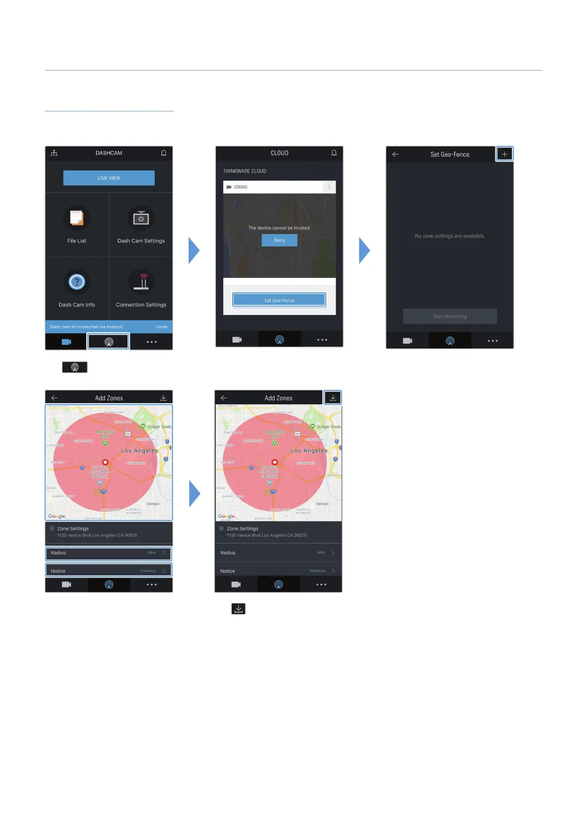 Tap . Tap Set Geo-Fence. Tap +.