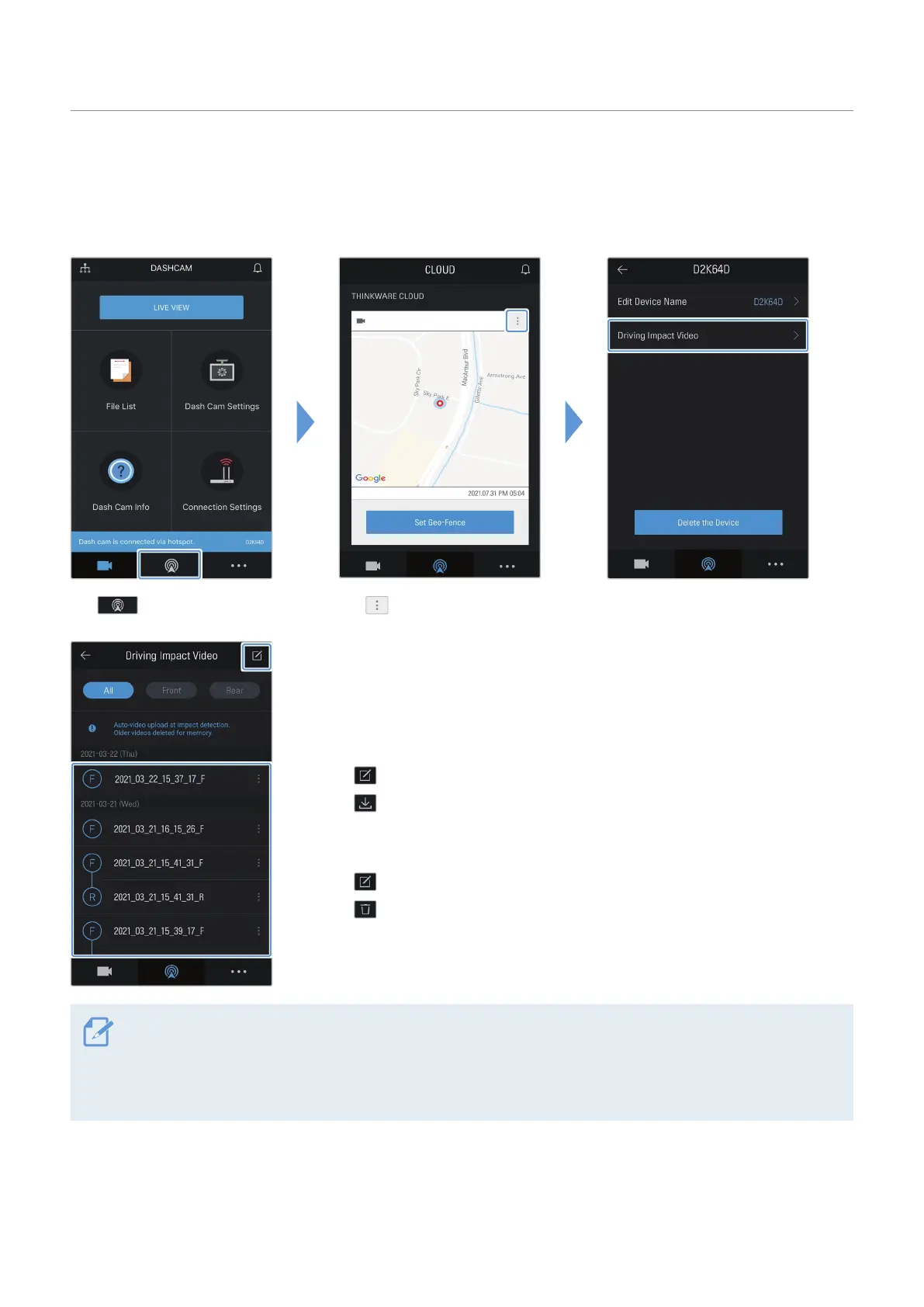 You can view driving impact videos uploaded on the cloud service if an impact is detected while driving.