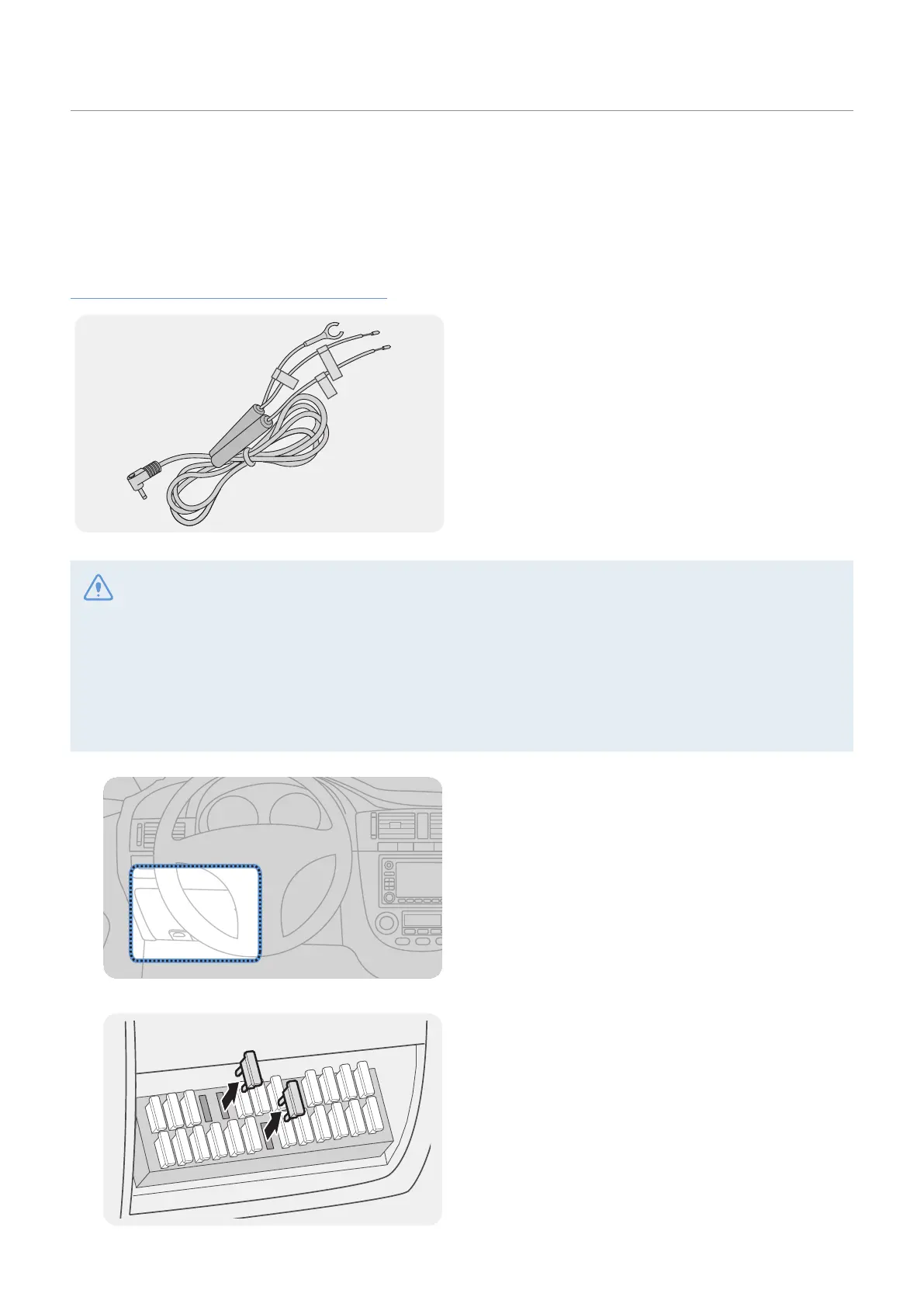 • The continuous power cable must be professionally installed in the vehicle by a trained mechanic. Contact