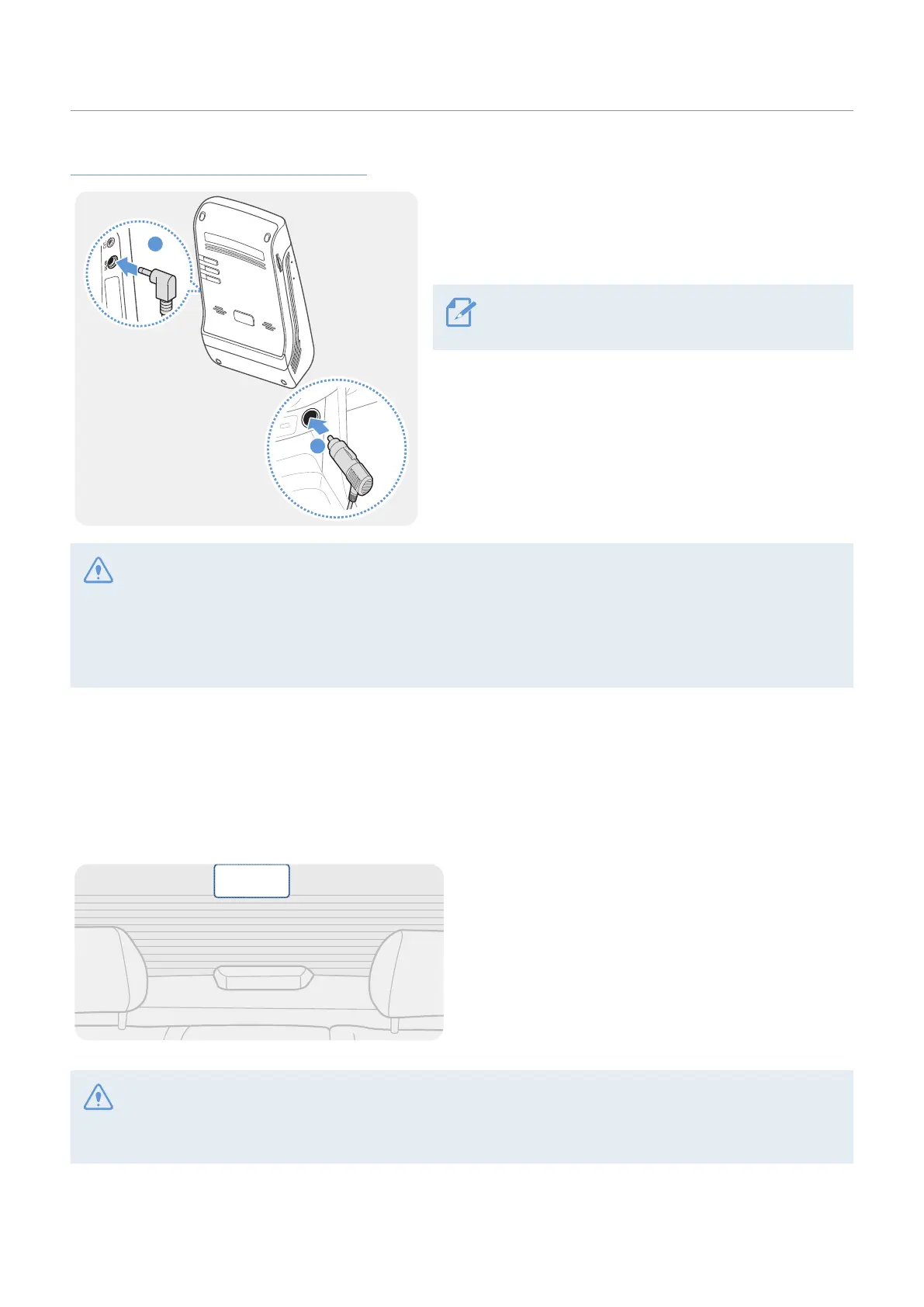 • Use the authentic THINKWARE car charger (optional). Use of third party power cables may damage the