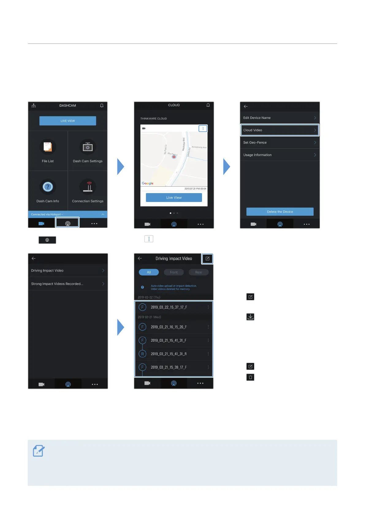You can view strong impact videos uploaded on the cloud service if an impact is detected while driving or