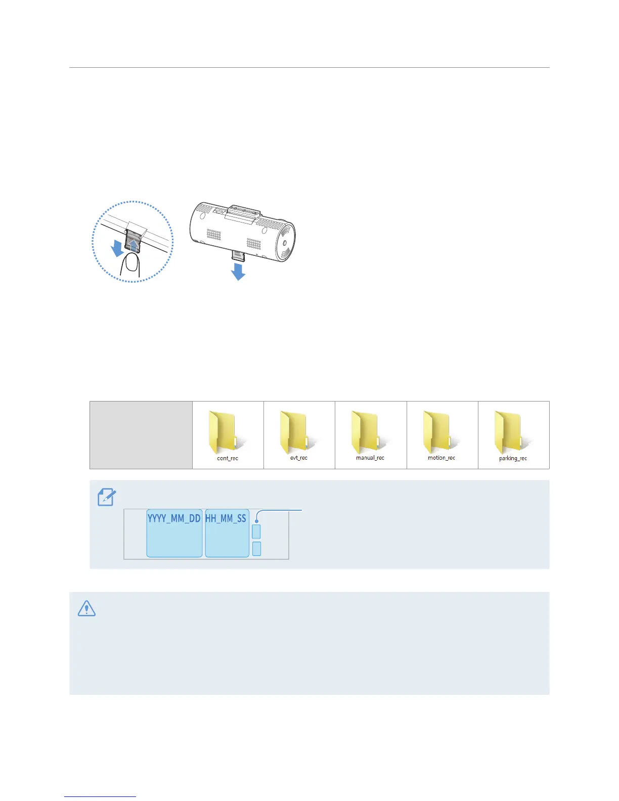 •Ensure that the product is turned off before removing the memory card. The recorded video files may be