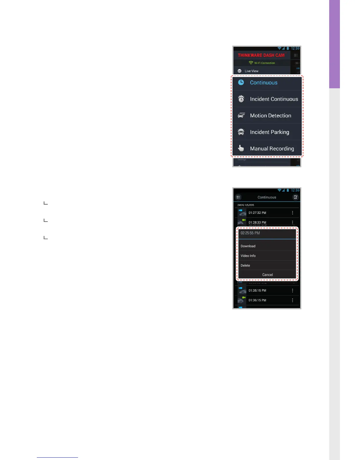Video Info : Displays date/time, le name, recording type, size, duration,