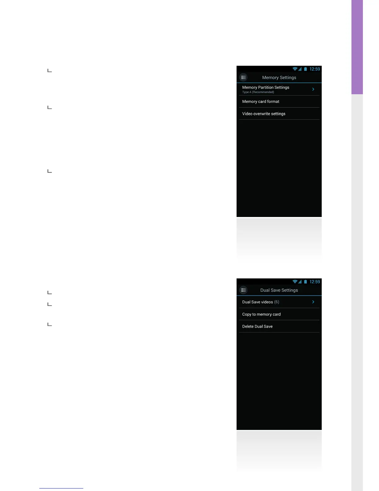 Copy to memory card : Copy all Dual Save videos saved on the inter-