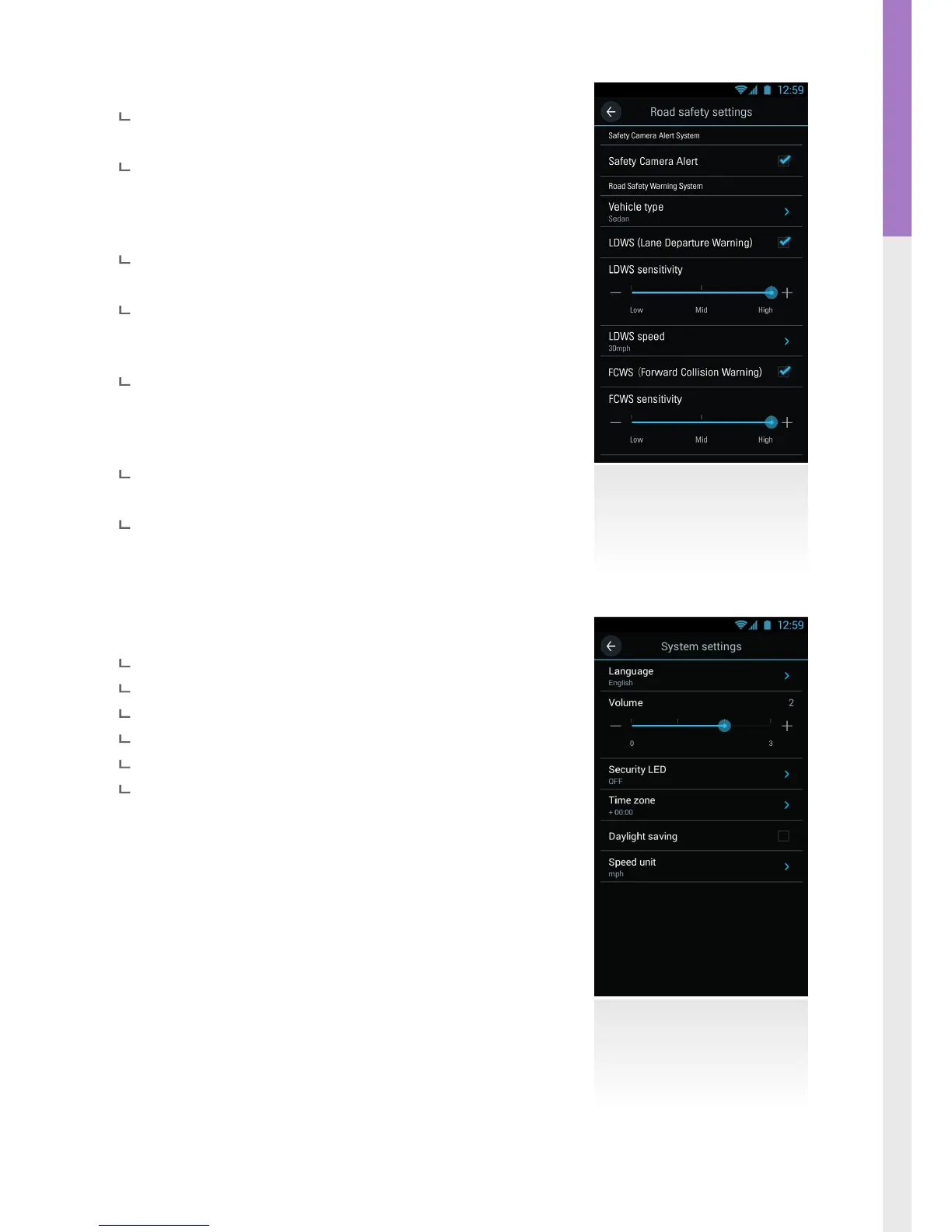 Sets the speed at which the LDWS notication is enabled. LDWS
