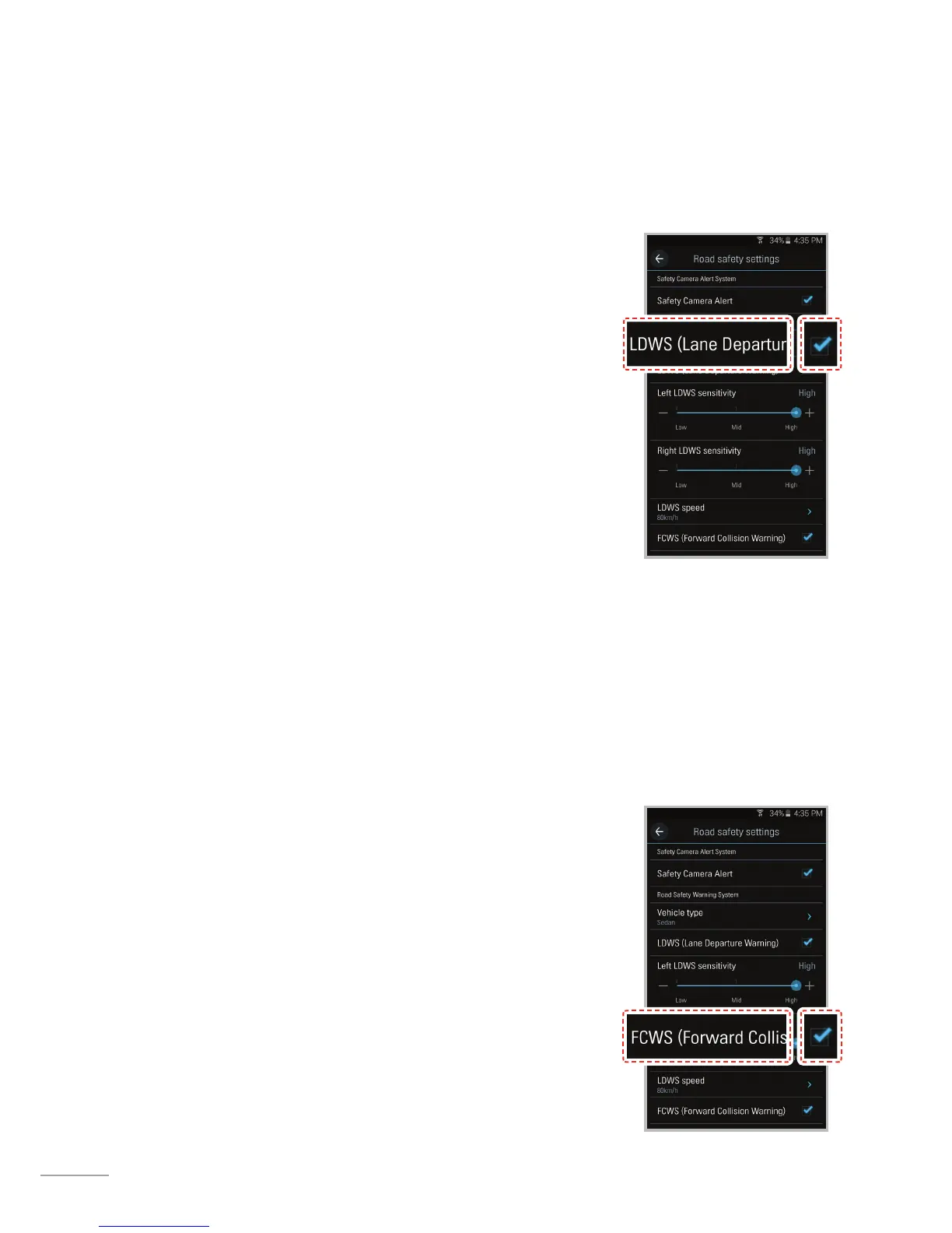 2. Enable LDWS feature by selecting "Dashcam Settings > Road safety settings
