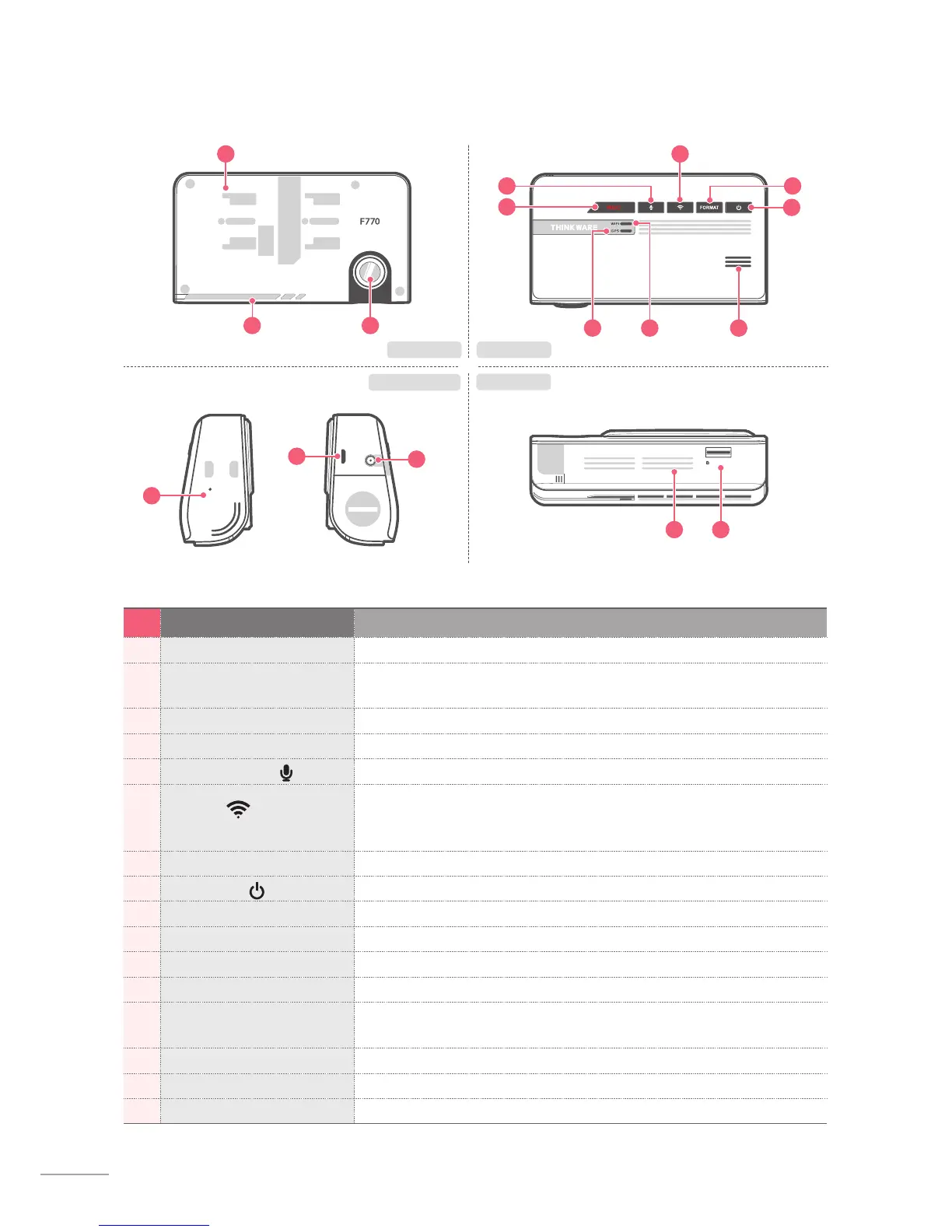 10 Wi-Fi LED Indicates connection status of Wi-Fi device (blue when connected)