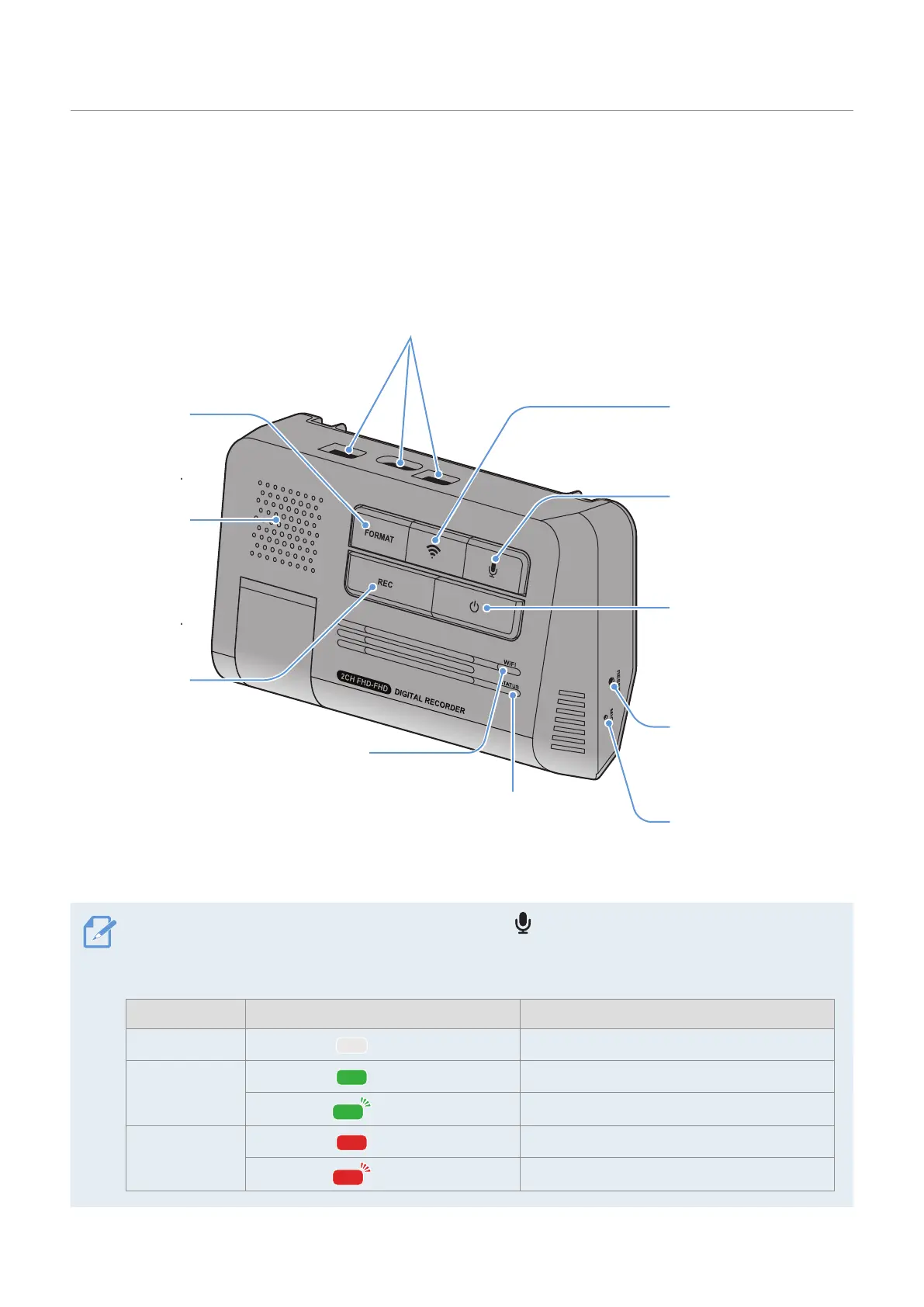 • To reset the product, press and hold the voice recording ( ) and manual recording (REC) buttons