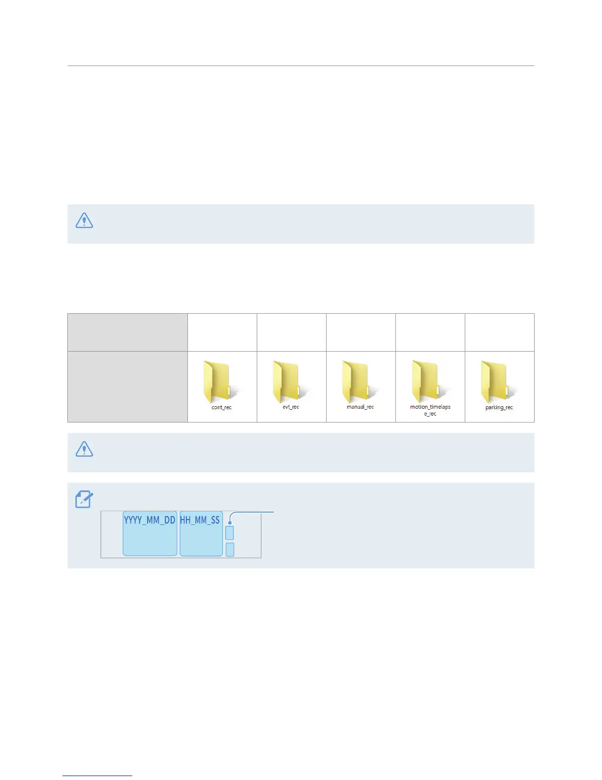 Videos are stored in the following folders according to their recording mode.