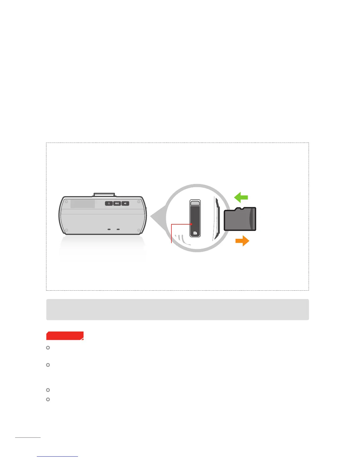 Class 6 or higher microSD card must be used with a storage capacity of 8GB or 16GB.