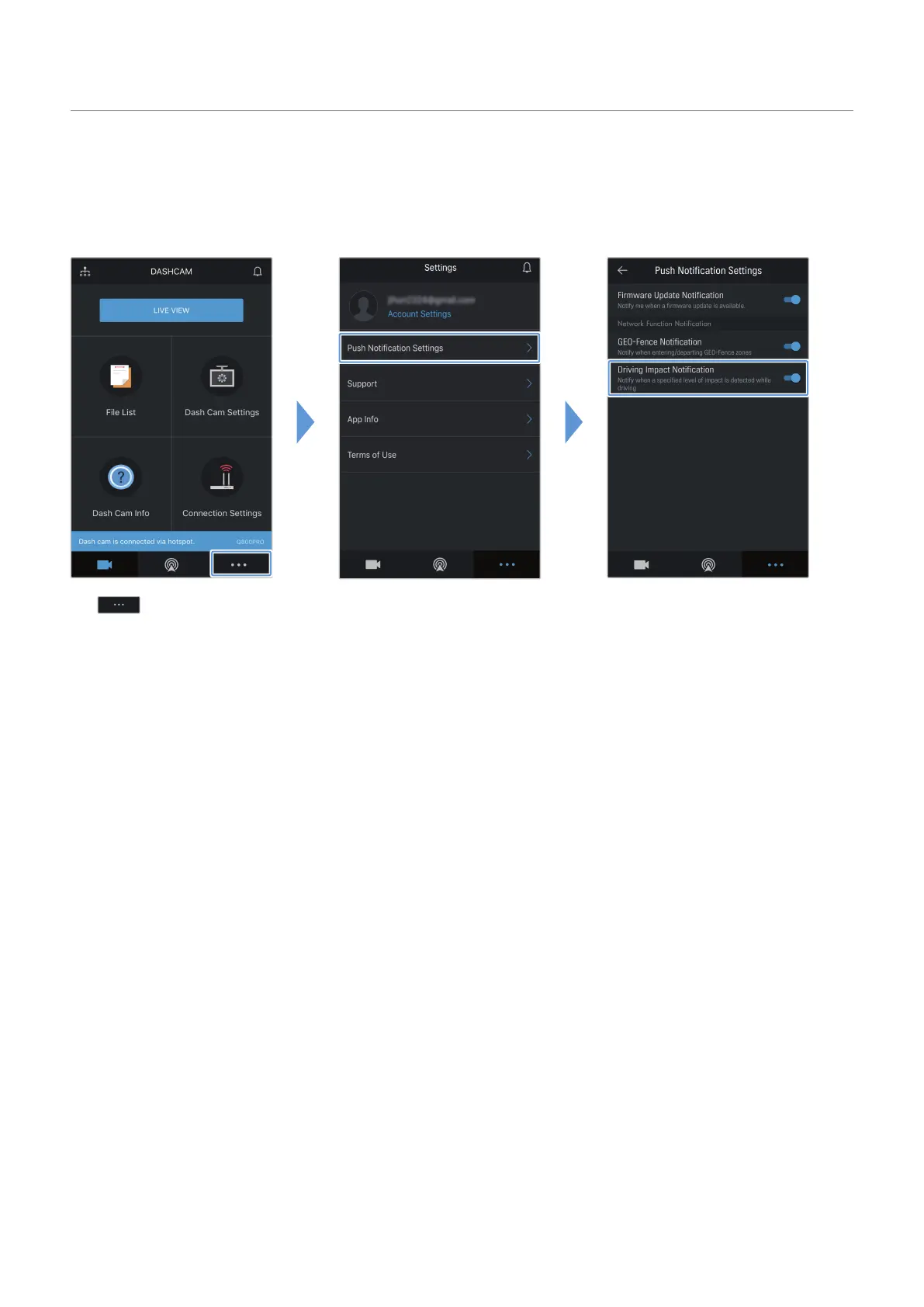 Tap . Tap Push Notification Settings. Tap Driving Impact