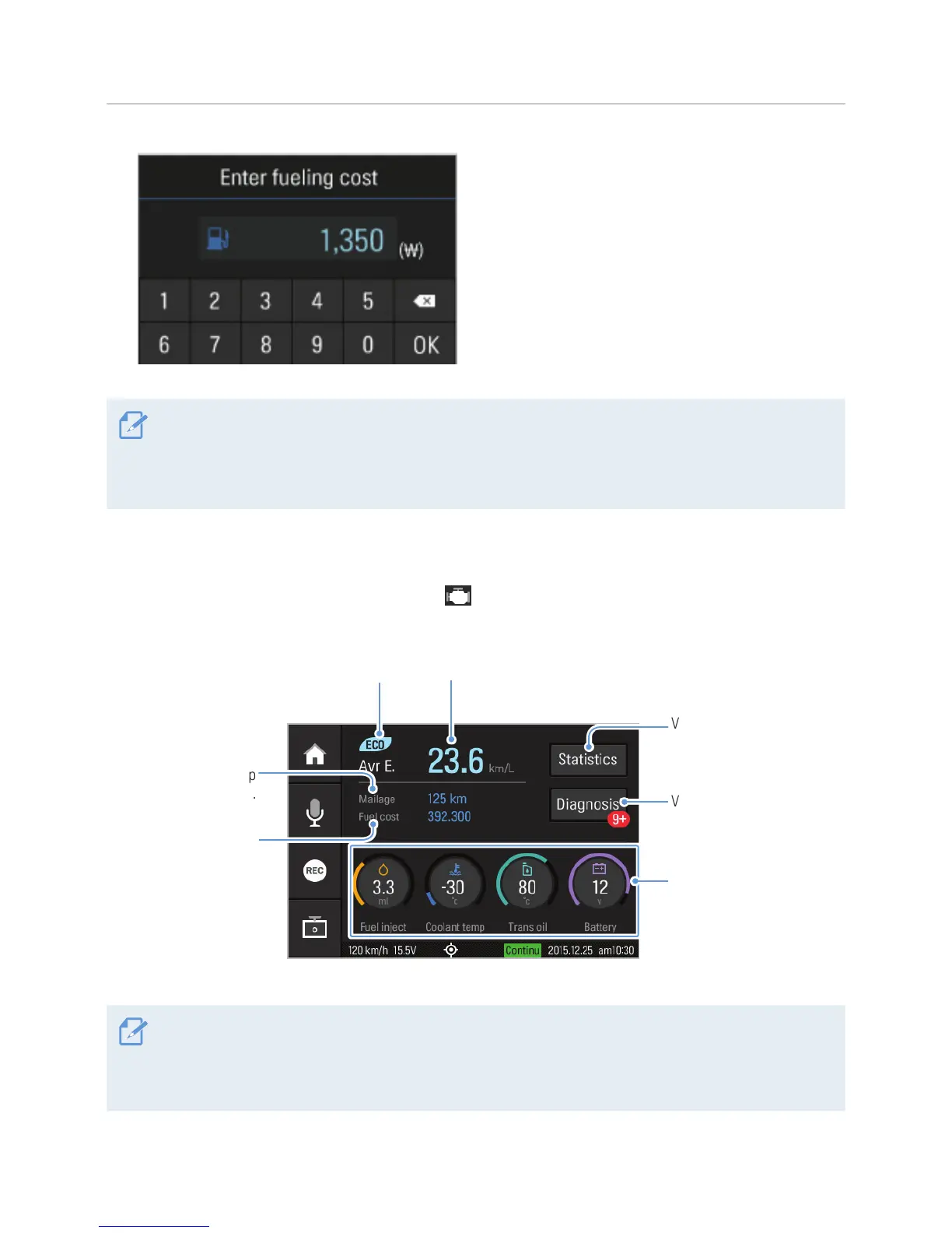 DriveX screen. If you drive a short distance, a gap between the real fuel consumption rate and the average