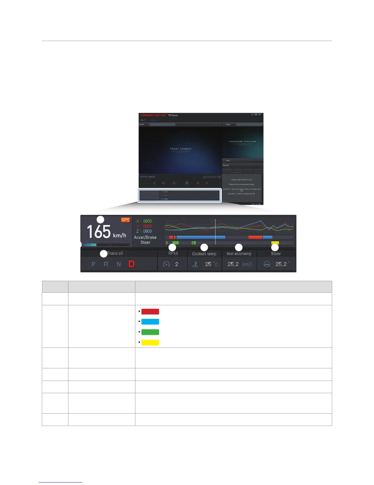 of the recording while playing the video files. The following explains the layout of the driving information