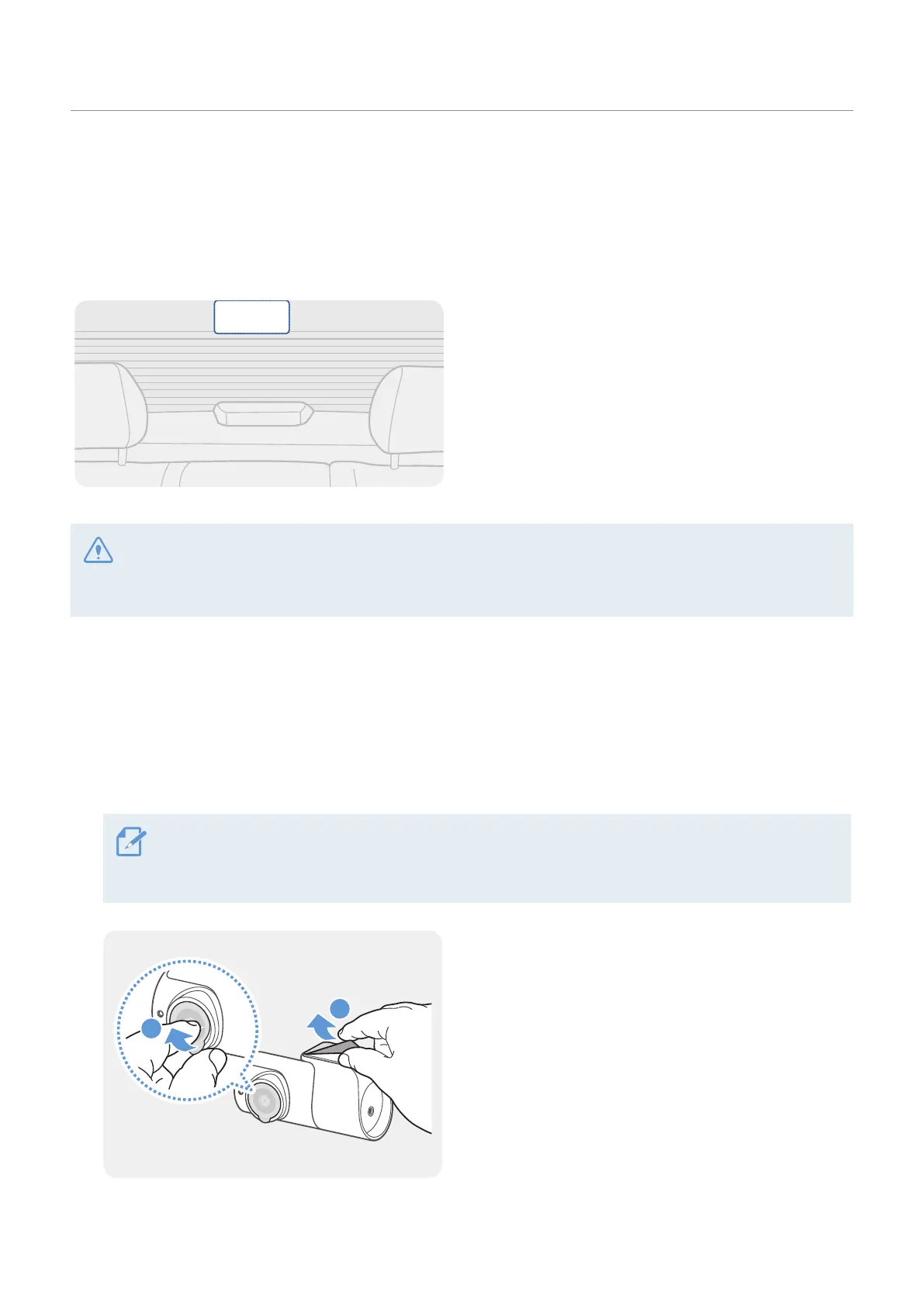 • The adhesive part of the rear camera should not touch the defrost grid.